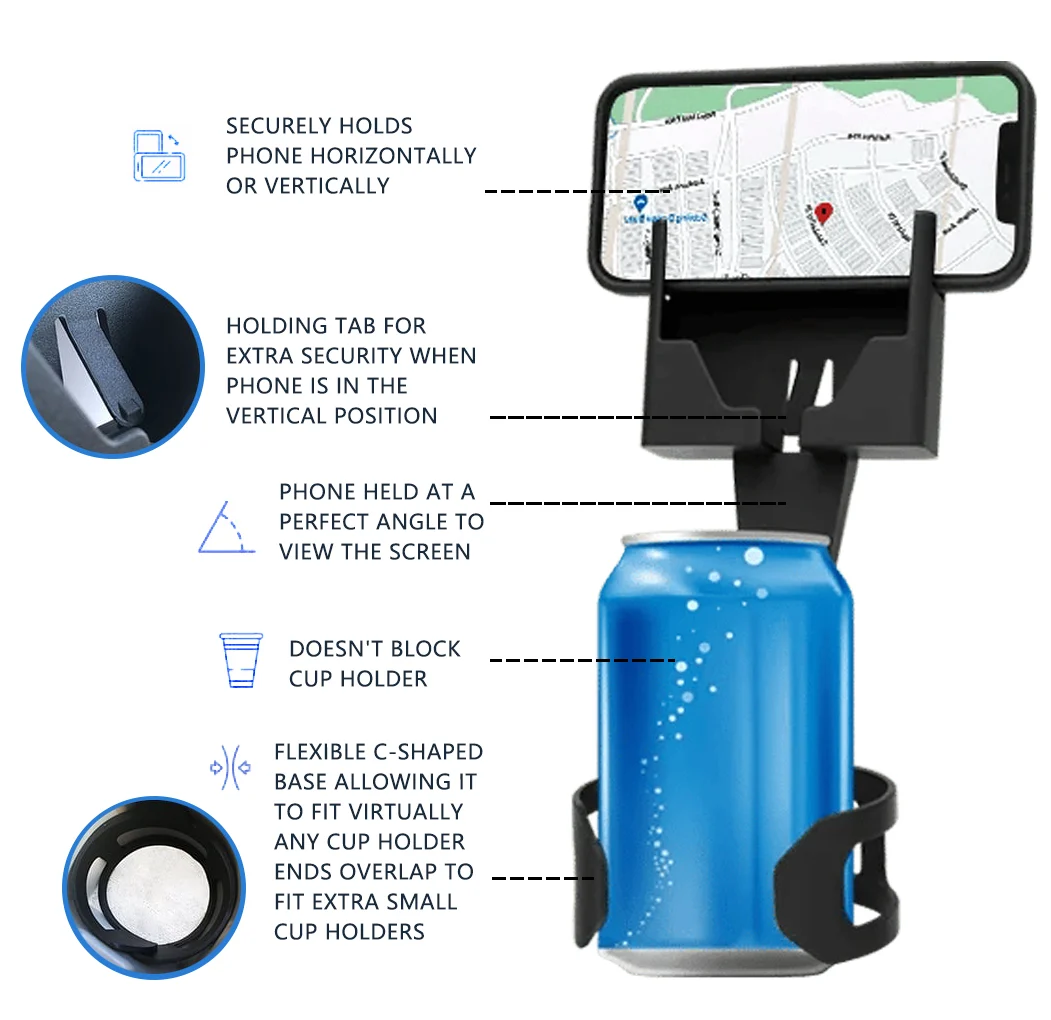 ↔️ Versatile! Adjusts 2-4" cup sizes & fits most phones, with/without cases.