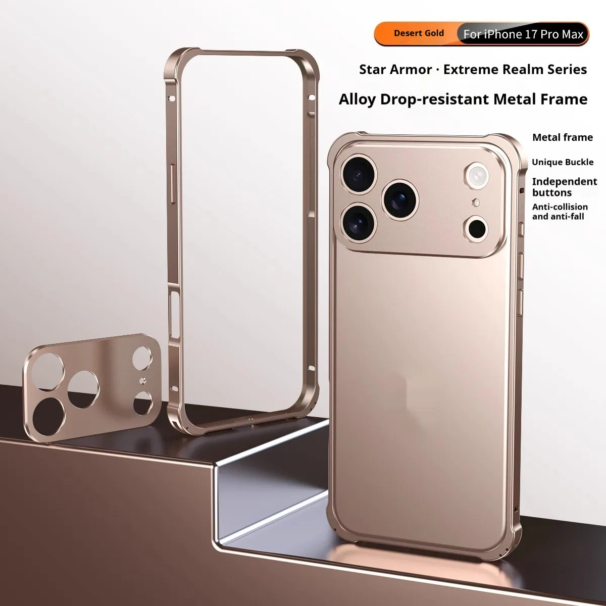 Mobile Phone Case with Seahorse Buckle & Four-Corner Anti-Drop Metal Frame