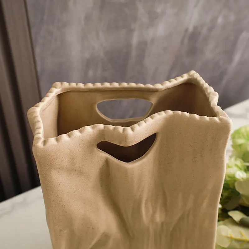 Modern Home Ceramic Paper Bag Vase Decoration – Chic and Unique Floral Accent for Contemporary Spaces