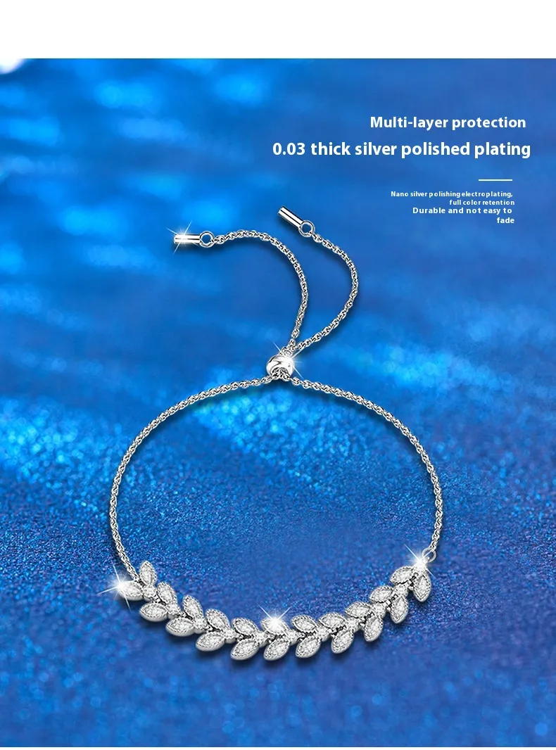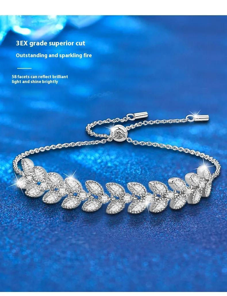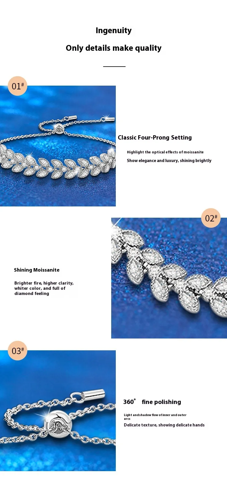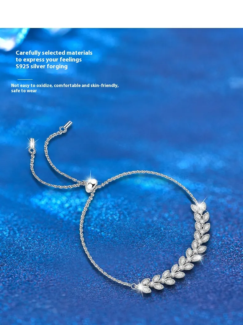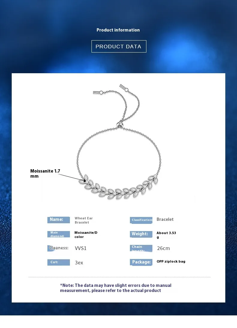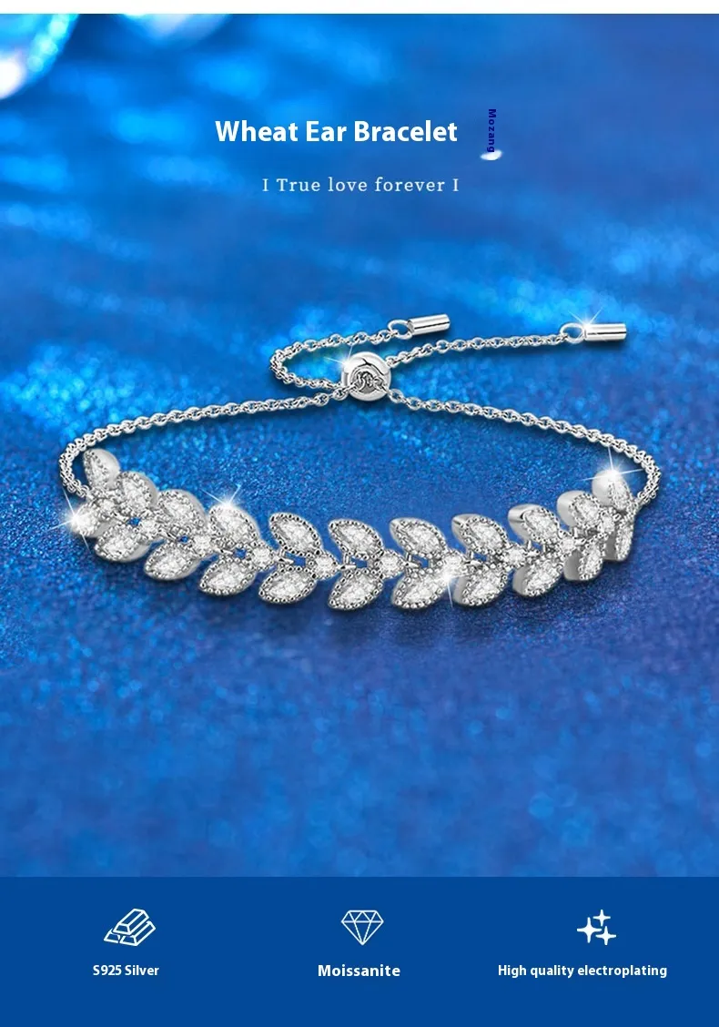 Designed with comfort in mind, the Moissanite Adjustable 925 Sterling Silver Wheat Bracelet features an adjustable chain that allows you to easily customize the fit. This ensures that the bracelet can be worn by women of all wrist sizes, making it an ideal gift for any occasion. The adjustable clasp provides both ease of wear and a secure fit, so you can wear it confidently throughout the day.