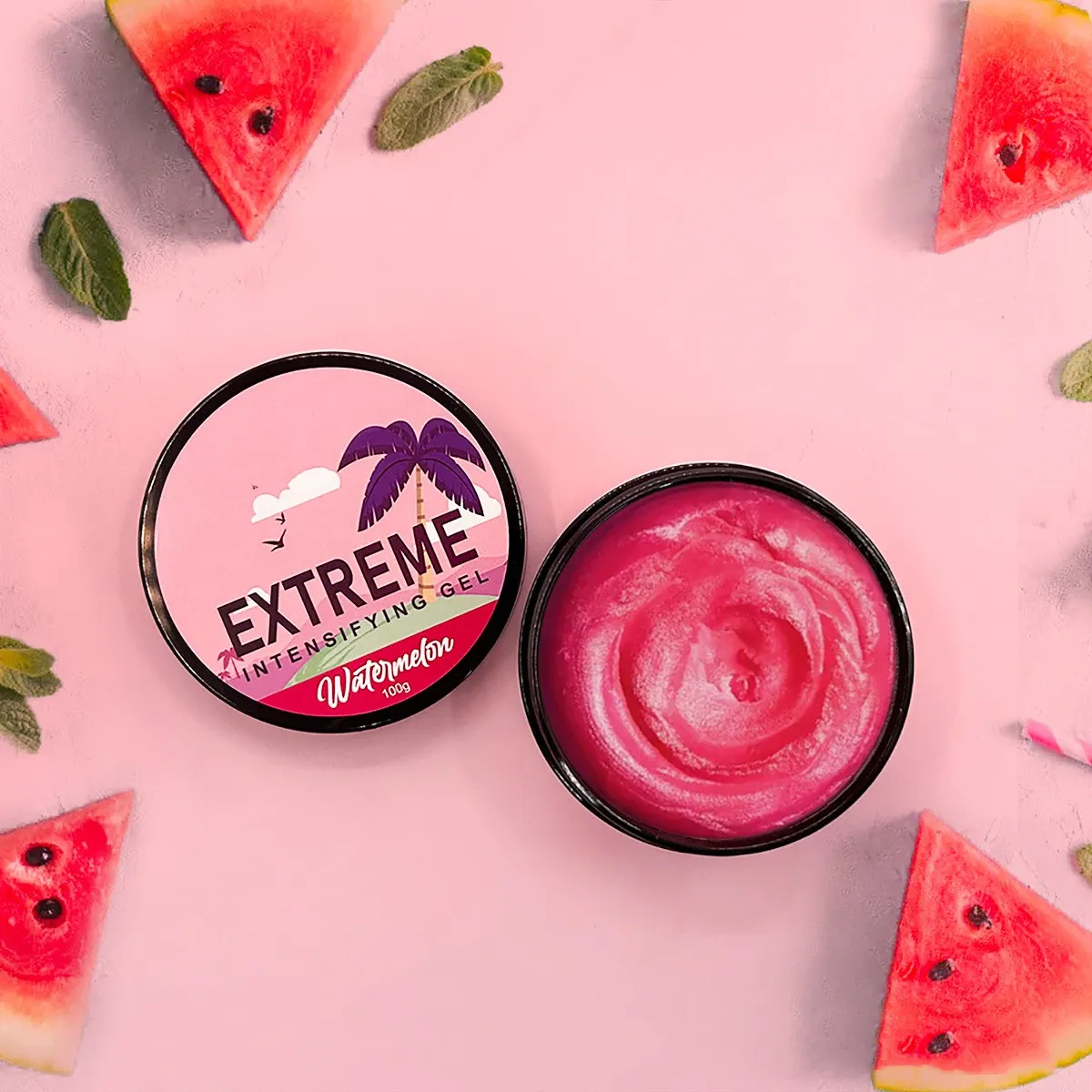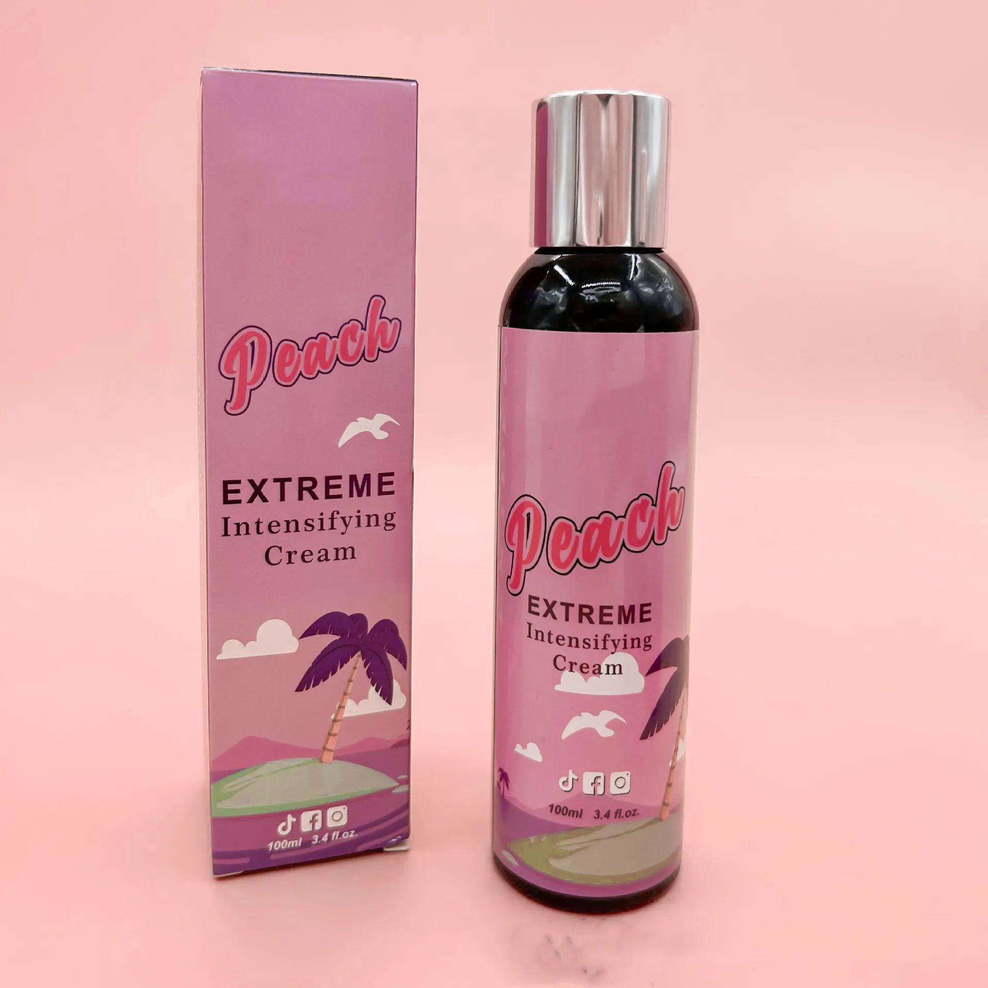 Product specifications: peach tanning gel, watermelon tanning gel, peach tanning cream and watermelon tanning cream.