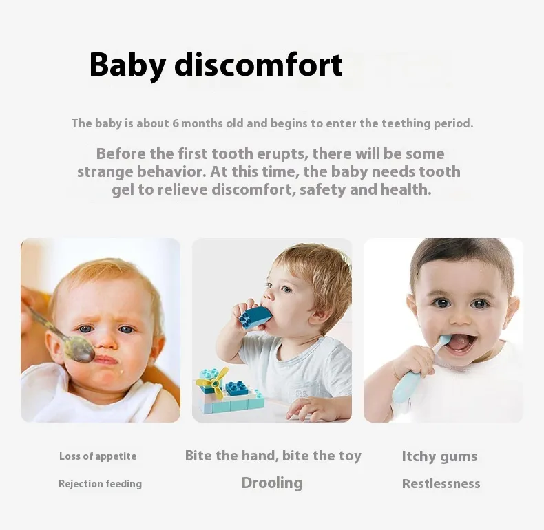 - Gum Soothing: Gently massages sore gums while providing relief from discomfort.