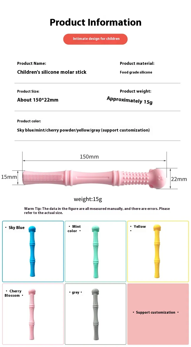 Key Features of the Molar Rod Teether Baby Teething Prevent Hand Sucking Training Edible Silicon