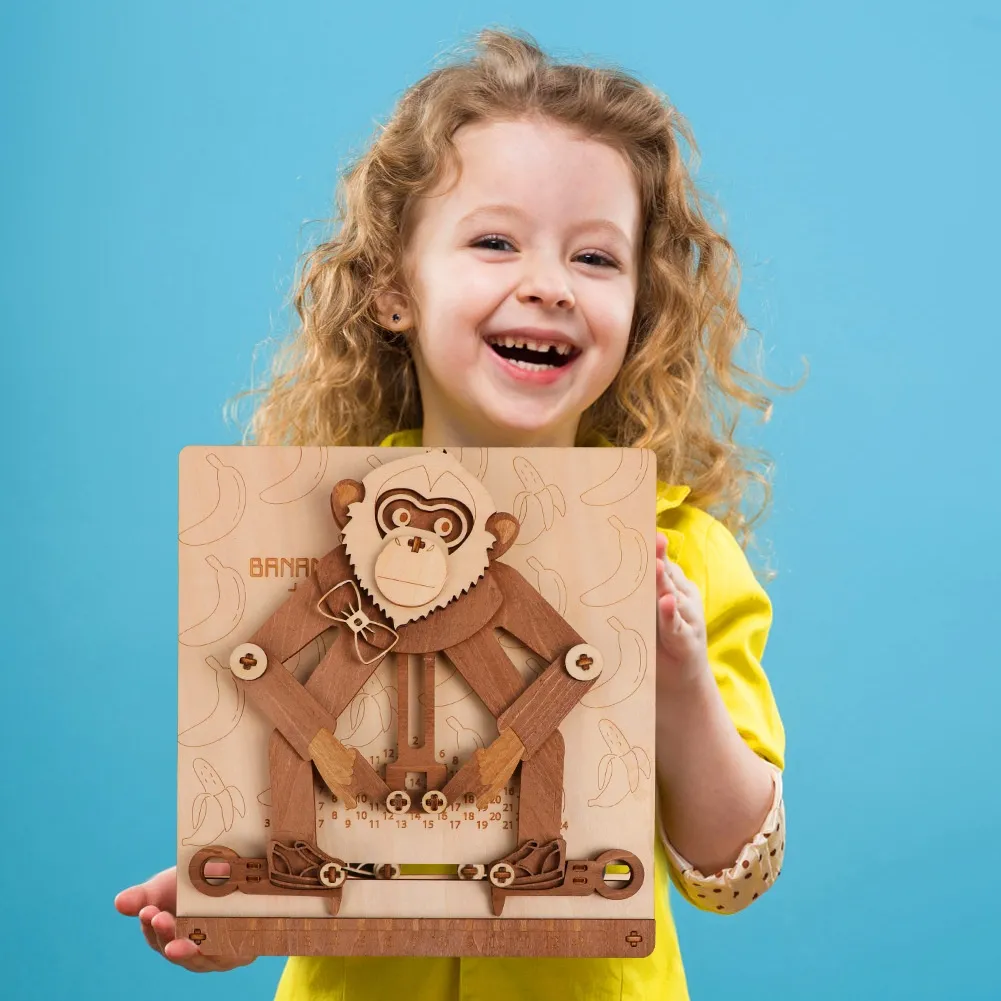 Crafted from high-quality, eco-friendly wood, this mechanical monkey is durable, safe, and easy to assemble with the included instructions. Children can build, move, and interact with the model, developing fine motor skills, logical thinking, and patience. Its movable design brings the monkey to life, adding a sense of accomplishment and excitement once fully assembled.
