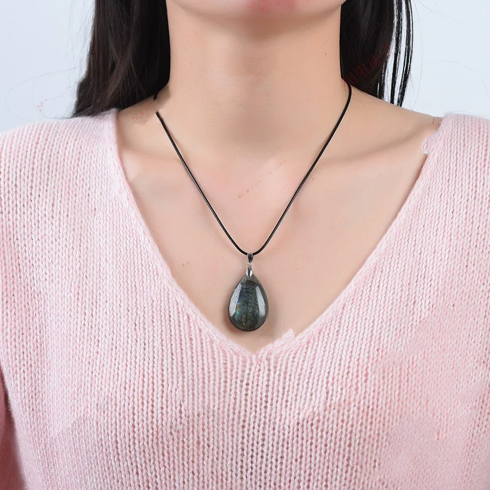 The water droplet shape of the pendant is sleek, minimalist, and timeless, ensuring that it can be worn on any occasion. Its clean lines and smooth surface highlight the natural beauty of the moonlight stone, making it a statement piece that never goes out of style. Whether you're attending a formal event or enjoying a casual outing, this necklace will add a touch of sophistication to your outfit.Its graceful design makes it versatile enough to wear every day or to elevate your look for special occasions. This pendant is not just a piece of jewelry – it’s a reflection of serenity, making it the perfect complement to any wardrobe.