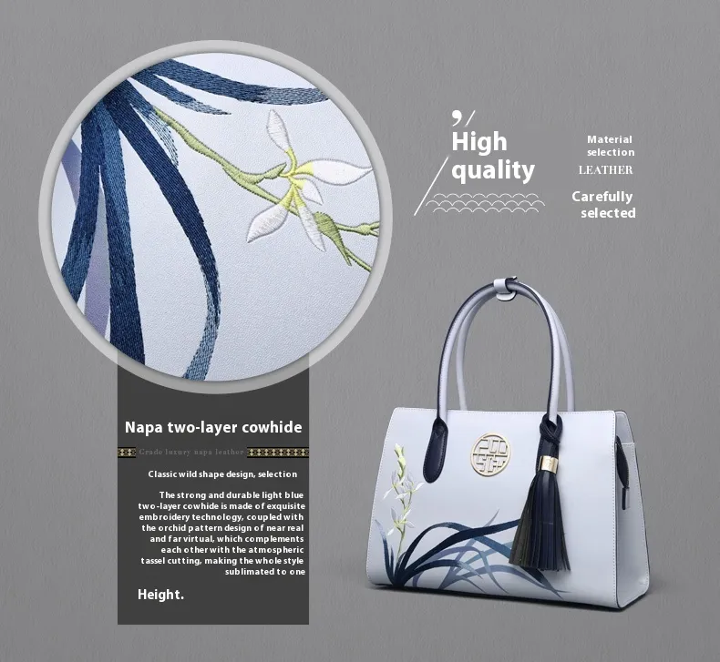 Inspired by traditional national craftsmanship, this handbag features intricate patterns and a design that pays homage to the rich cultural heritage of the Mid-Autumn Festival. The combination of vibrant colors, luxurious materials, and cultural symbolism makes it not only a fashion statement but also a beautiful tribute to the festival. The detailed embroidery and artistry make this handbag a unique and thoughtful gift.