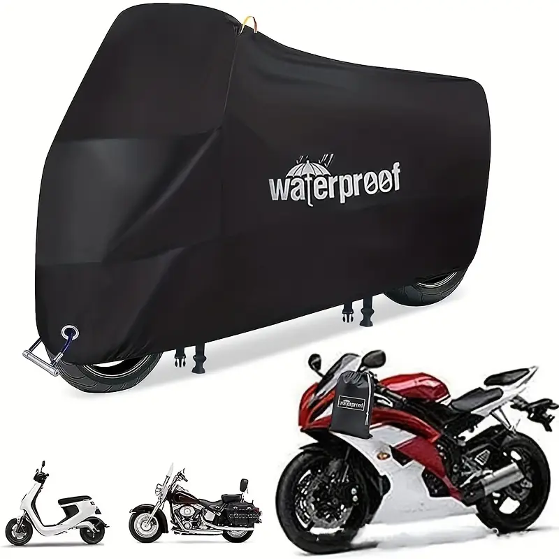 Motorcycle Covers, Heavy Duty 210D Waterproof UV Protective Tear Proof Motorbike Cover With Safety Cloth Lock Holes Design