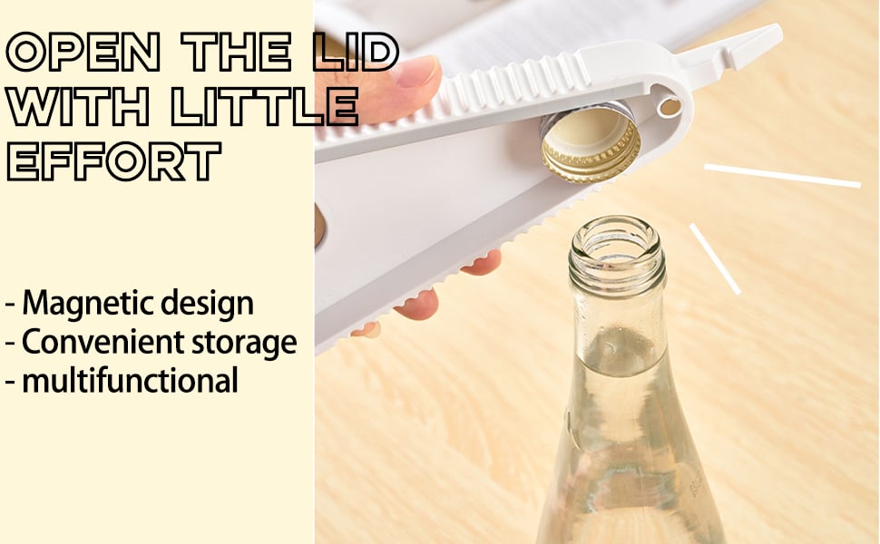 - Widely Used: multi-functional bottle opener, Suitable for various vacuum sealed can lids ,bottle caps, bean cans, Small and medium-sized pickle bottle caps, soda and soft drink caps. The bottle cap opener is very durable in any kitchen situation.small jar opener