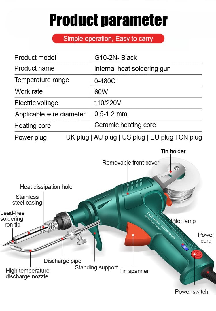- 【Portable & Convenient】: Unlike bulky soldering stations, the gun's compact size and lightweight design It fits comfortably in my hand and is easy to carry around, which is convenient when I'm working on projects in different locations. Just plug and play