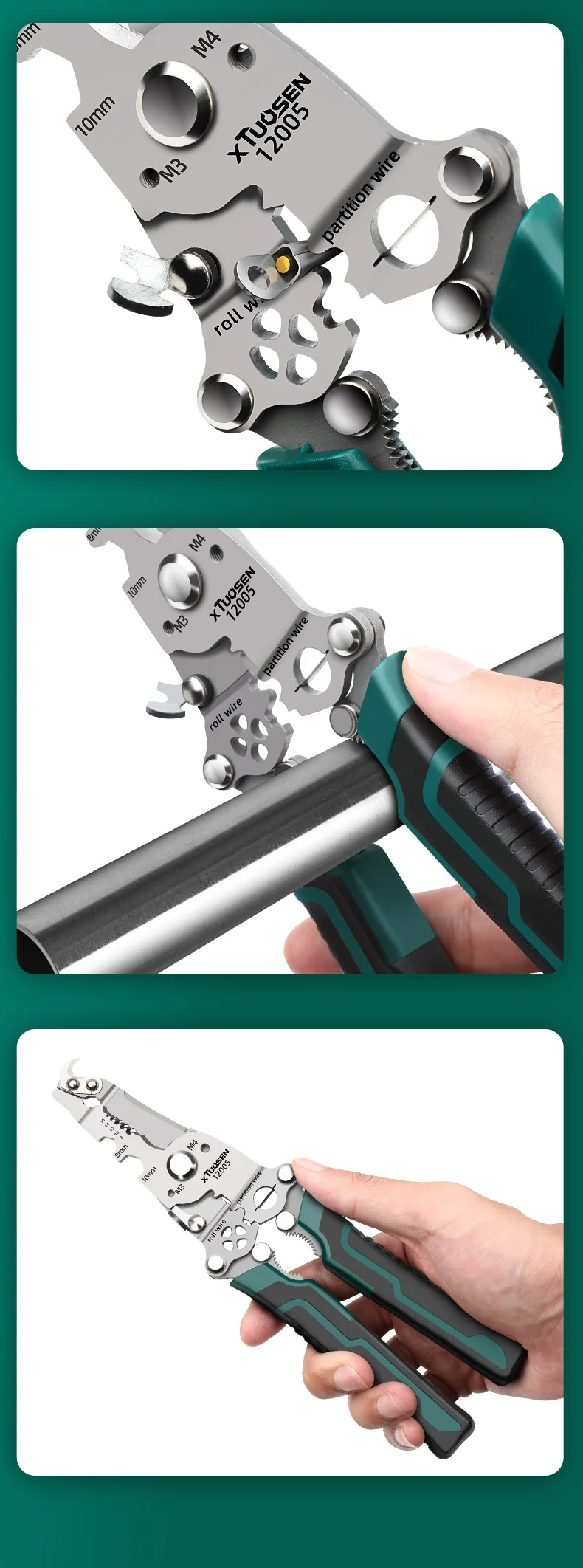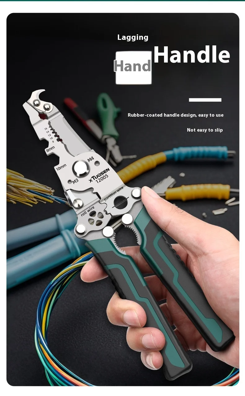 Crafted for precision and durability, the multi-functional pliers are designed to handle a wide range of tasks, making them ideal for electricians and DIY enthusiasts alike. Whether you’re cutting wires, stripping, splitting, or pressing them into place, this tool will save you time and effort, all while ensuring professional results.