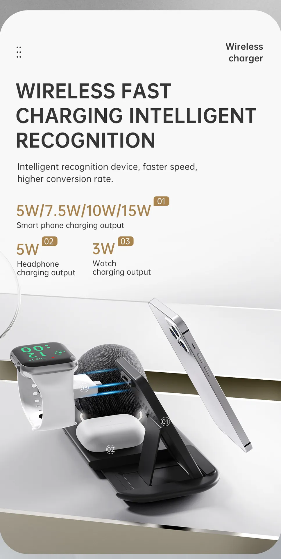 Mobile phone charging output: 5W/7.5W/10W/15W(MAX)