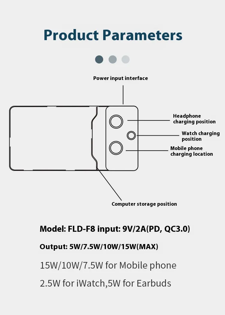 - Universal Compatibility: Compatible with Qi-enabled smartphones (iPhone, Samsung, etc.), Apple Watch, and wireless earbuds such as AirPods.