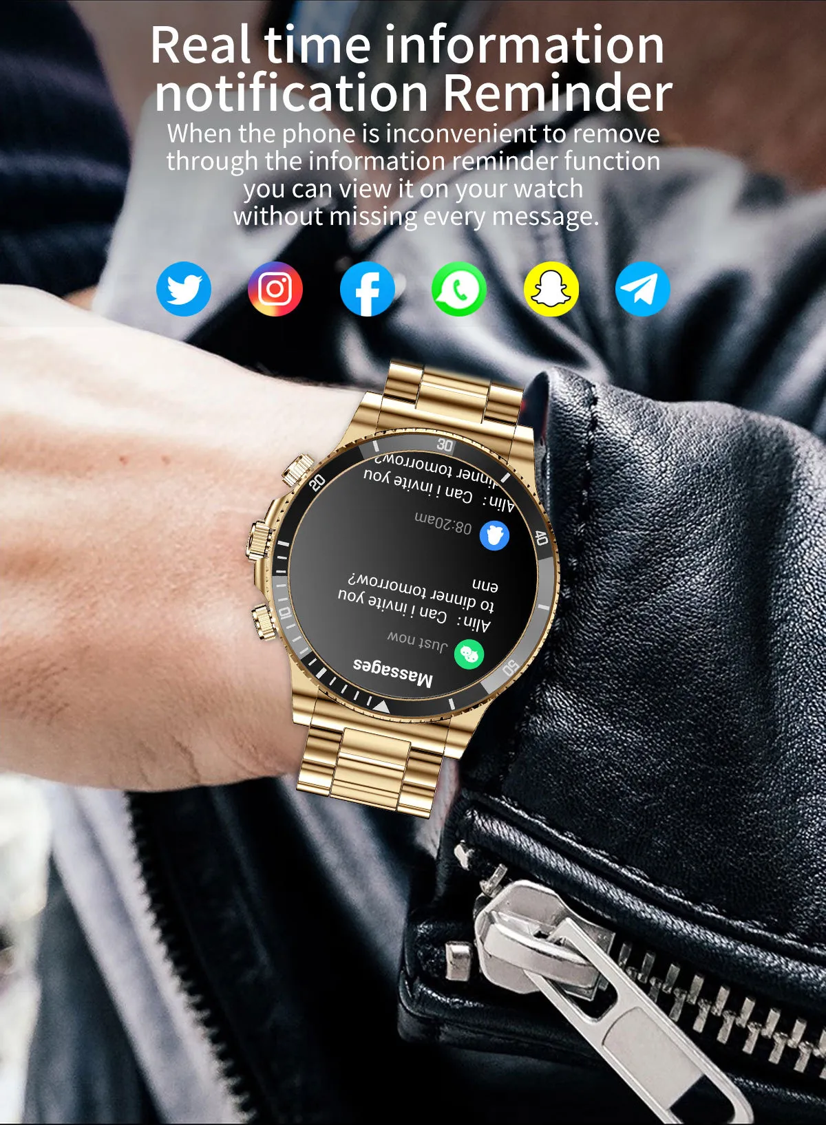 - Message Alerts: Receive notifications for calls, messages, and app alerts, ensuring you never miss important updates, whether you’re at the gym or on a hike.