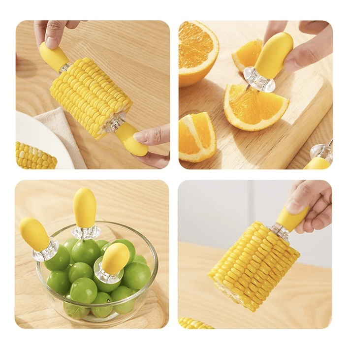 The sharp stainless steel pins securely hold the corn, keeping your fingers safely away from hot surfaces. This design ensures you can enjoy