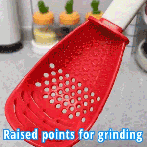 The Multifunctional Kitchen Cooking Spoon can be used for cooking, draining, mashing, and grating garlic. It can be used for mashing potatoes or beans. It also functions as an eggbeater.