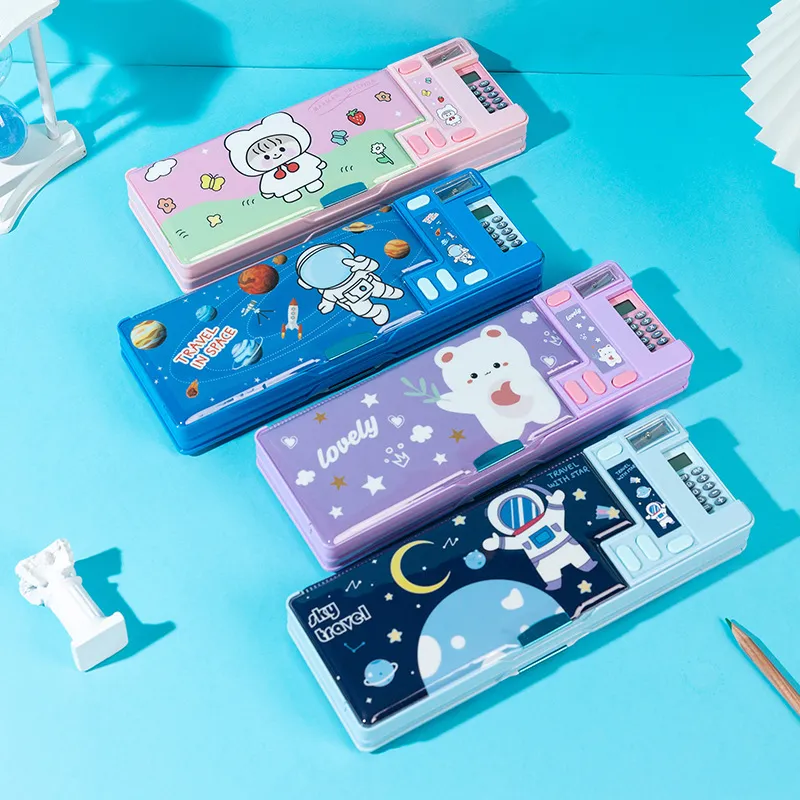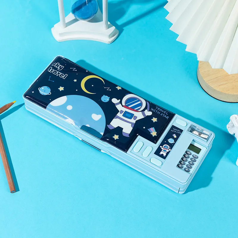 Black, double-sided opening and closing-calculator pencil box sky blue, double-sided opening and closing-calculator pencil box astronaut,