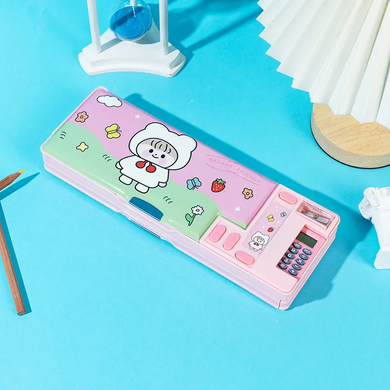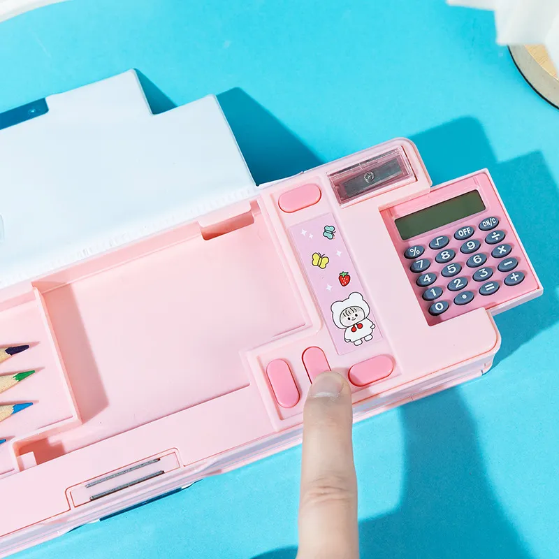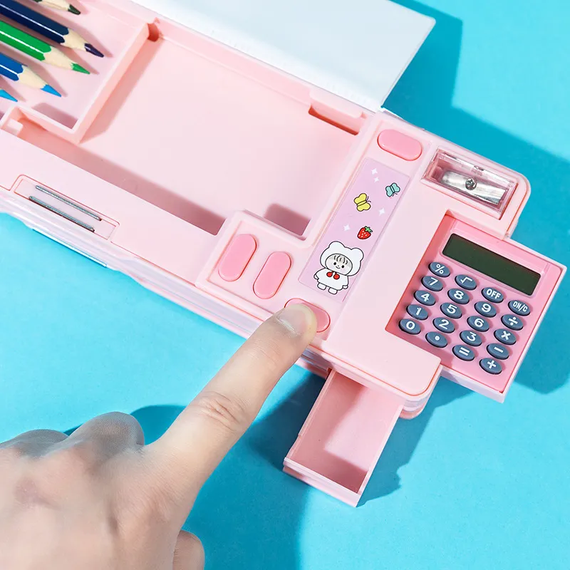 Specifications: double-sided opening and closing-calculator pencil box pink 02, double-sided opening and closing-calculator pencil box