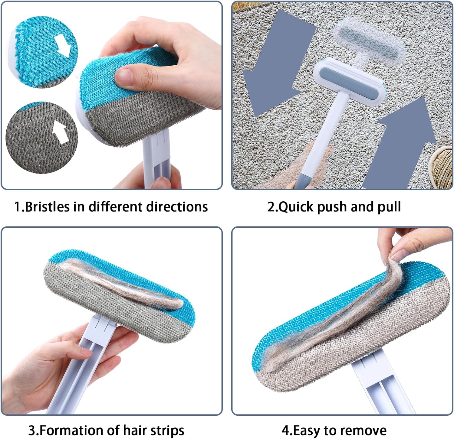 This 4-in-1 brush head has separate small brushes on the back of the head and the bottom of the handle to help remove hair from the brush head and clean the gaps, hair on clothes, easy to remove, no need to manually remove fur, wasting precious time.