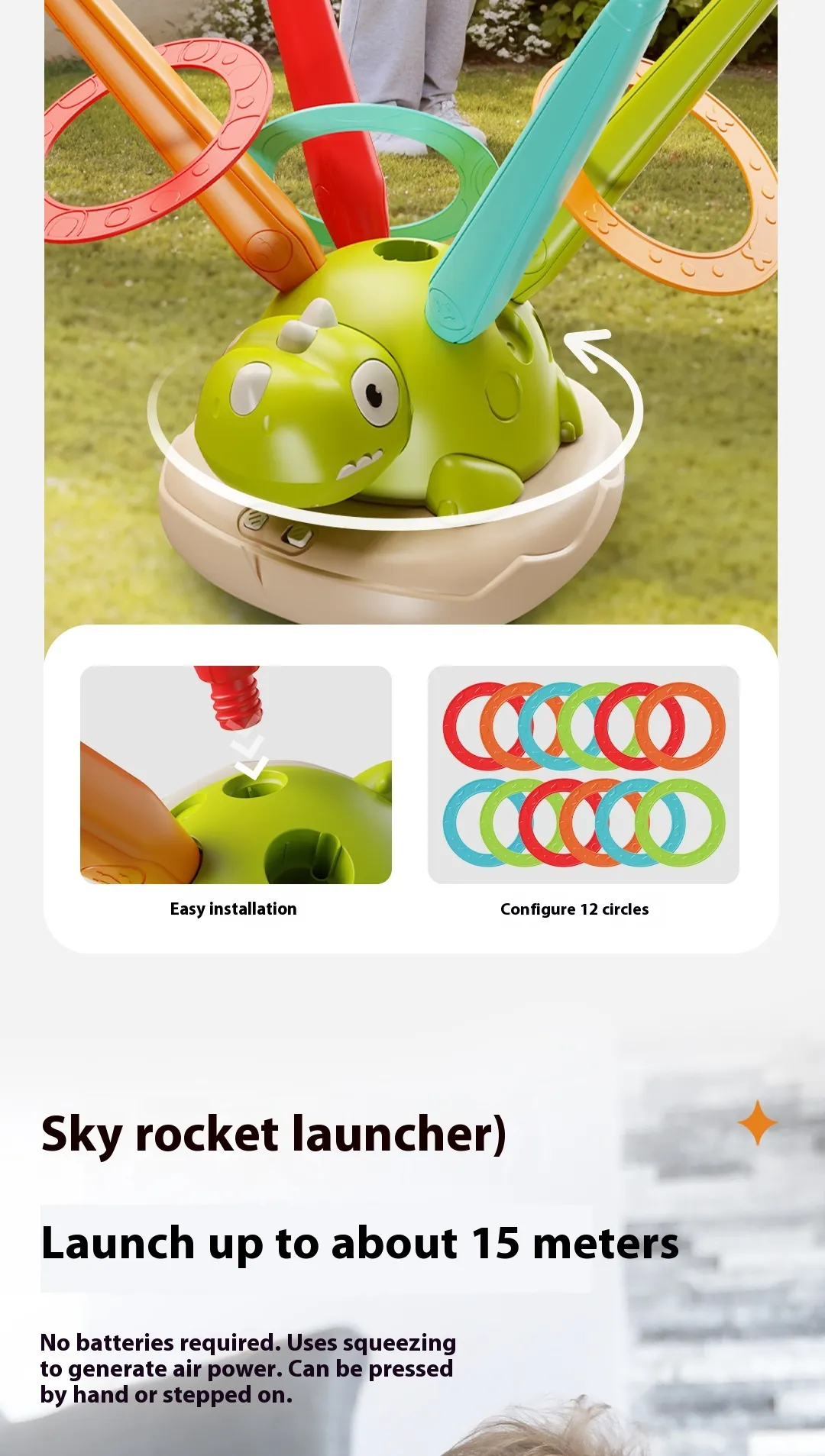 Skyrocket: This feature adds an exciting element of motion as the toy propels rings into the air, allowing kids to aim and