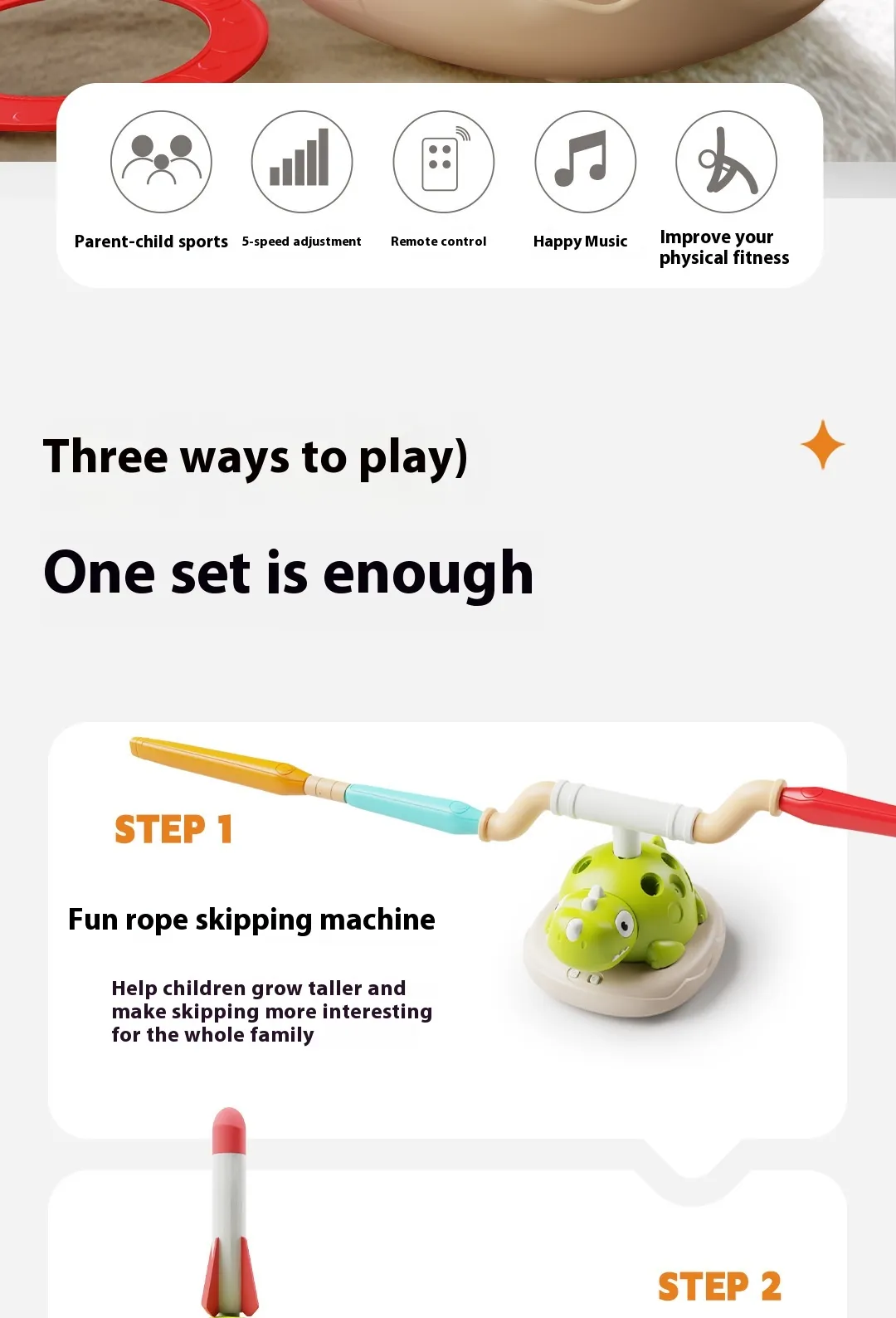 Promotes Physical Health and Development: This exercise machine promotes overall physical health by encouraging kids to engage in various activities that improve their balance, strength, coordination, and cardiovascular fitness. By participating in ring throwing, skipping, and skyrocket challenges, children get to stay fit while having a blast.