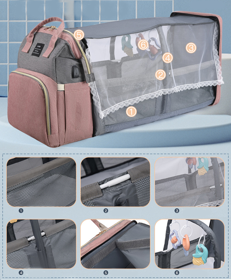 - All-in-One Solution: Combines the functionality of a diaper bag, bottle warmer, and portable crib, making it the only bag you need for outings with your baby.