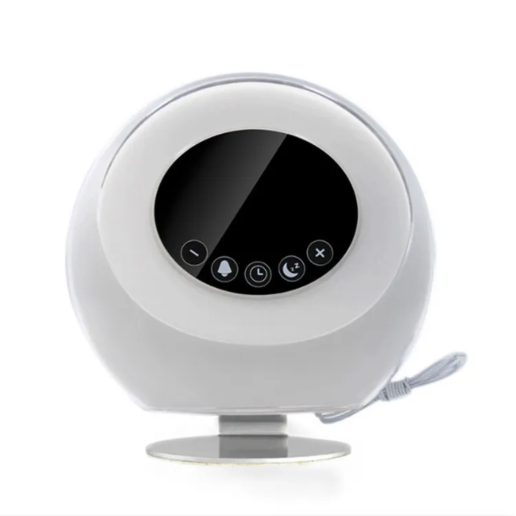 - Gradually increases brightness and plays soft sounds to wake you up naturally.