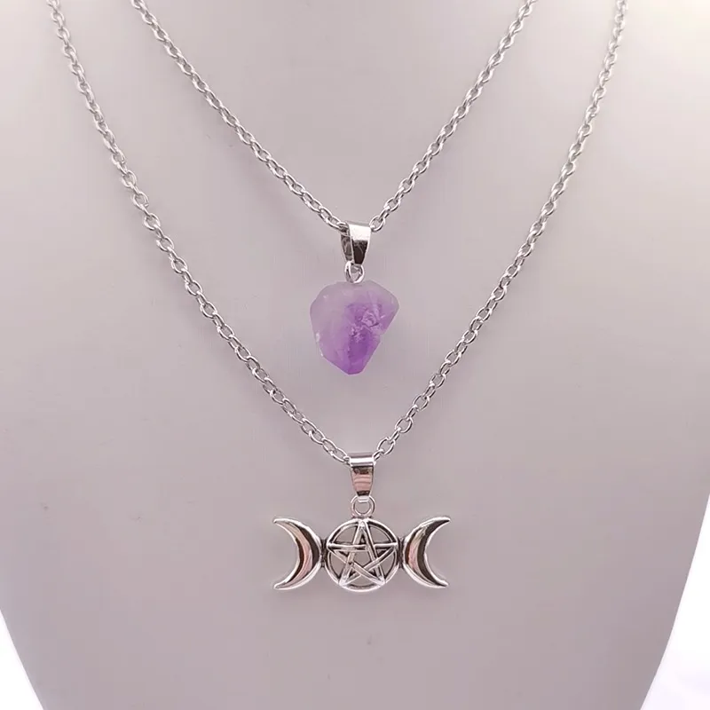 Natural Amethyst Cluster Pentagram Sun Pendant Necklace