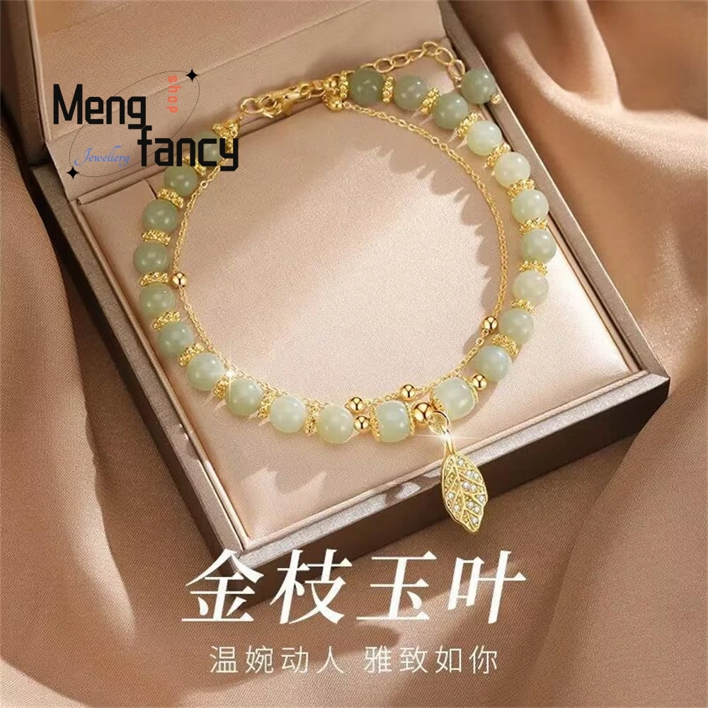 Natural Hetian Jasper Bracelet Golden Branch & Jade Leaves for Womens Fashion Jewelry