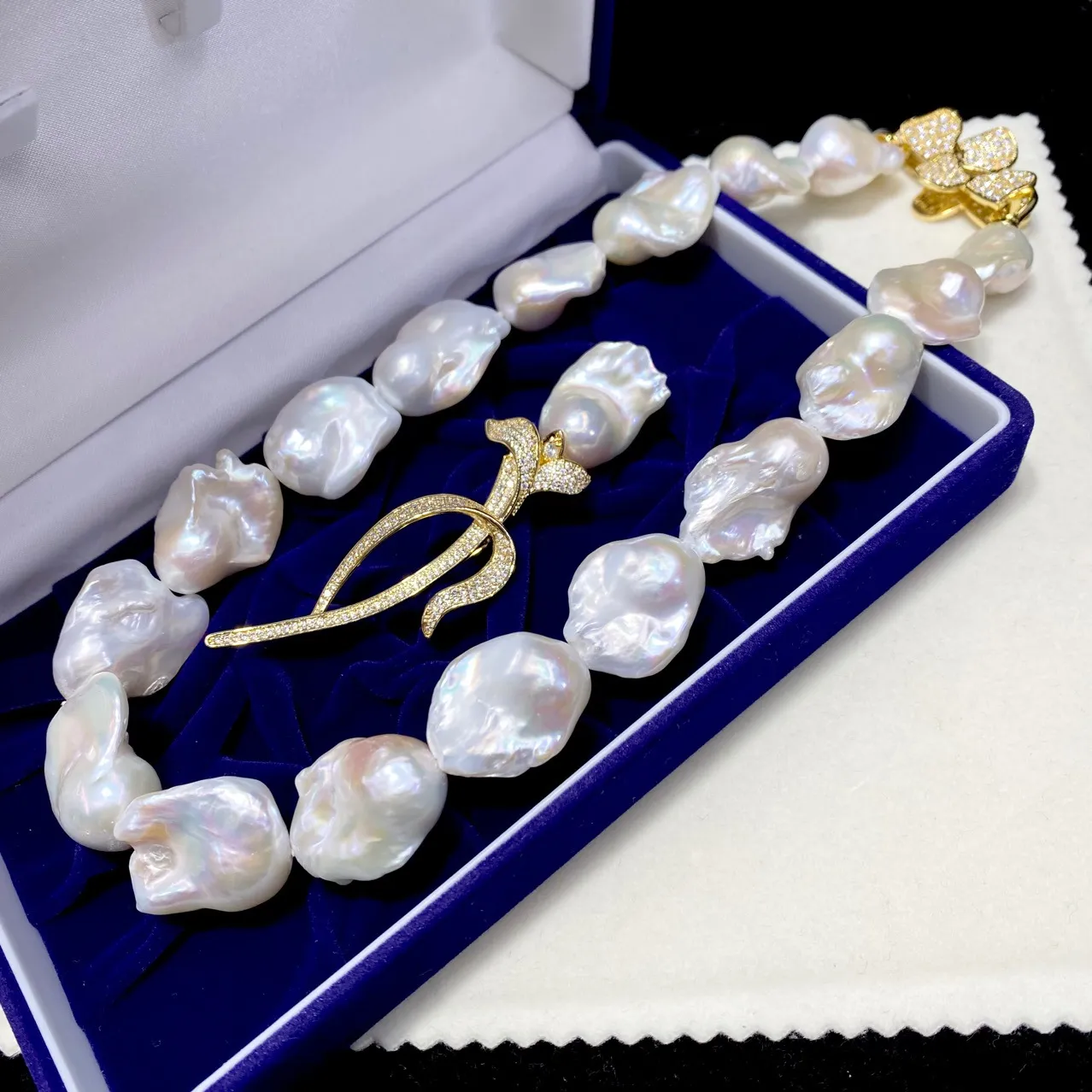 Natural Large Particle Baroque Shaped Freshwater Pearl Necklace For Women