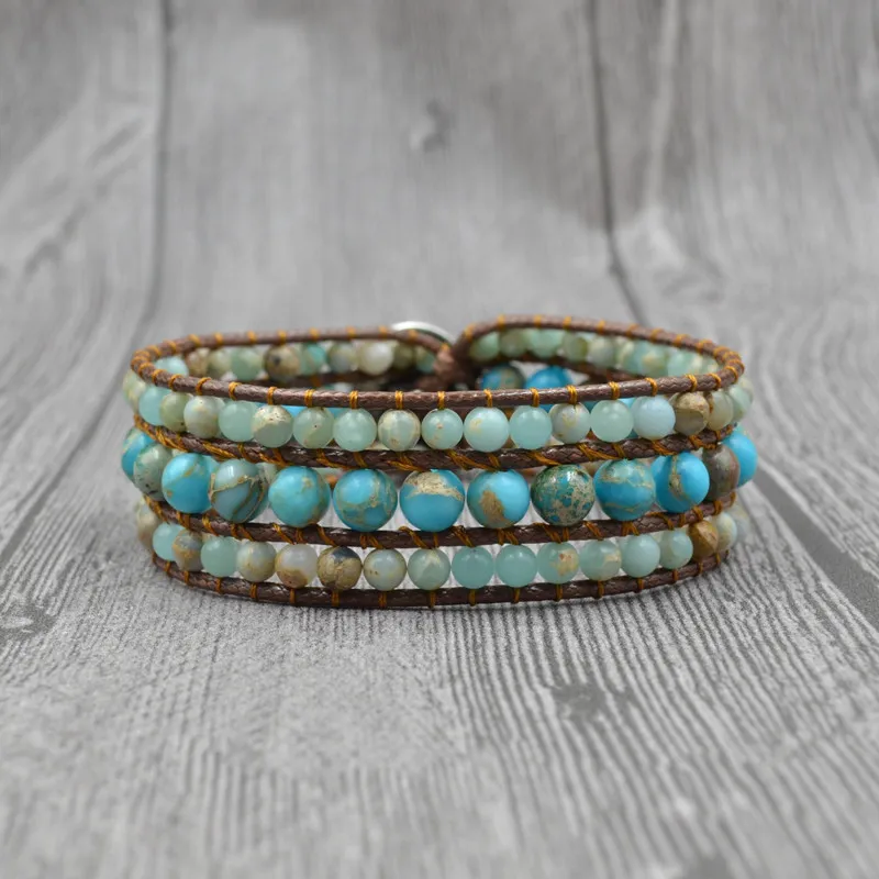 The multilayer bracelet works beautifully with a bohemian-inspired outfit. Layer it with other natural stone accessories, such as rings or necklaces, and pair it with a flowing dress or patterned top. The bracelet’s earthy materials and texture make it a perfect fit for a free-spirited, boho-chic aesthetic.