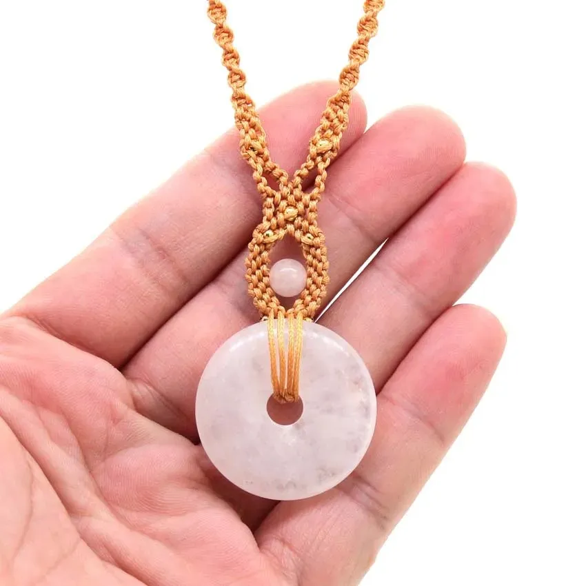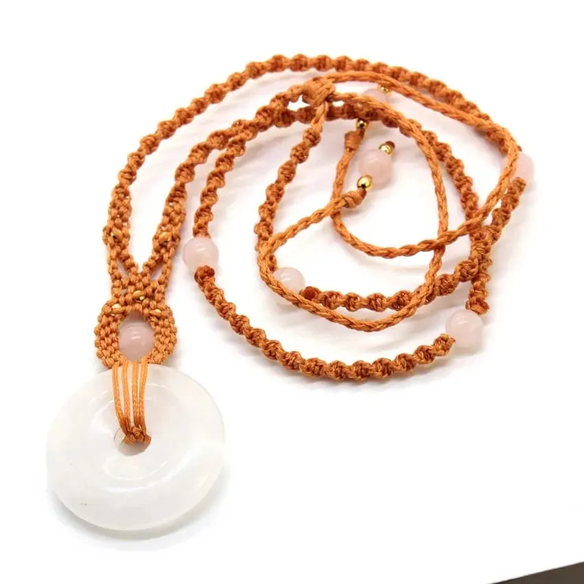 Natural White Crystal Peace Buckle Hand-woven Pendant Vintage Necklace