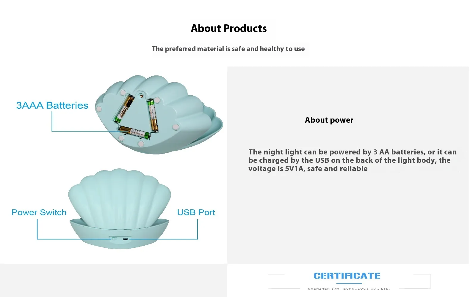 Lightweight and compact, the shell-shaped night lamp can be easily moved from room to room, allowing you to customize your lighting