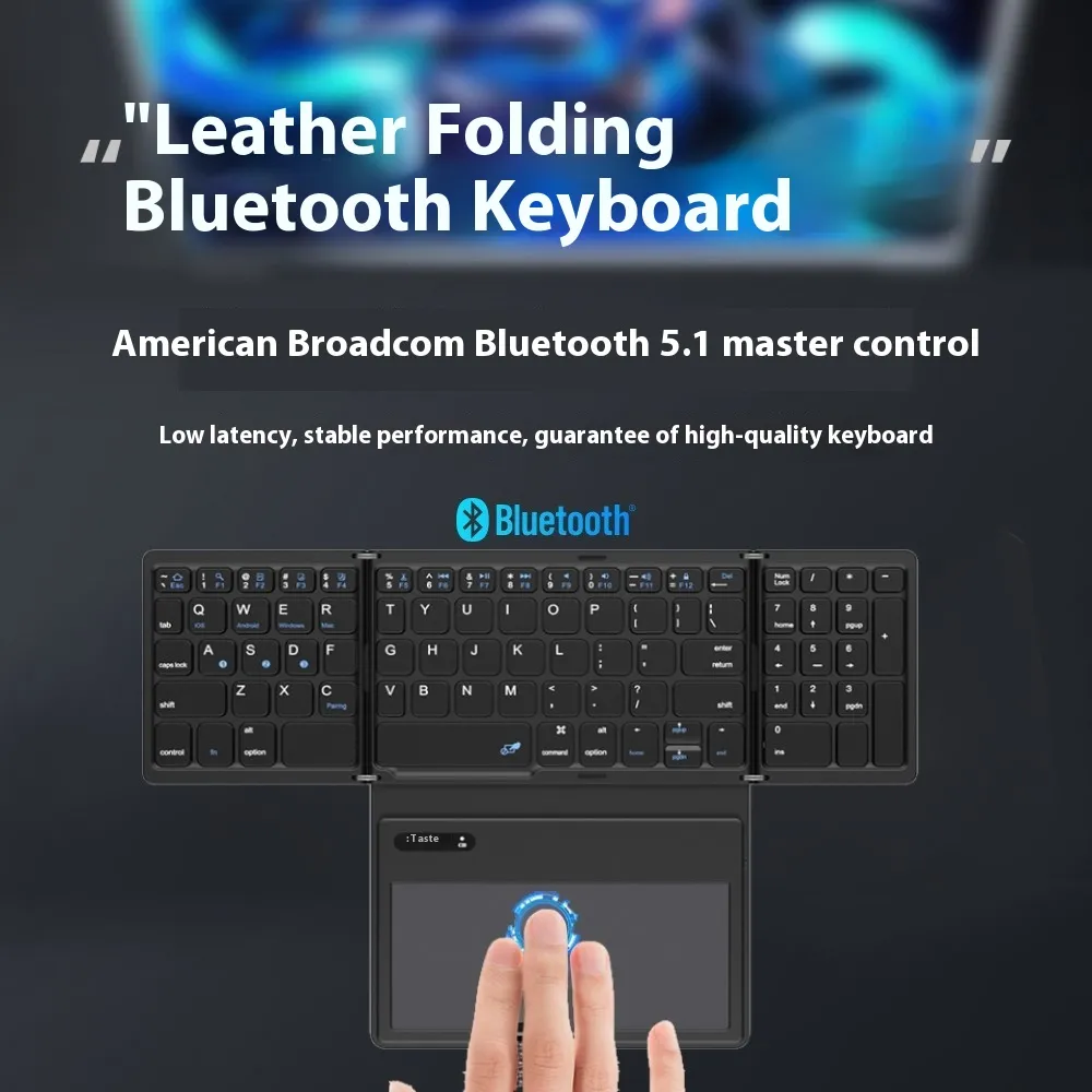 New B055 Business Leather Large Touch Version Bluetooth Folding Keyboard