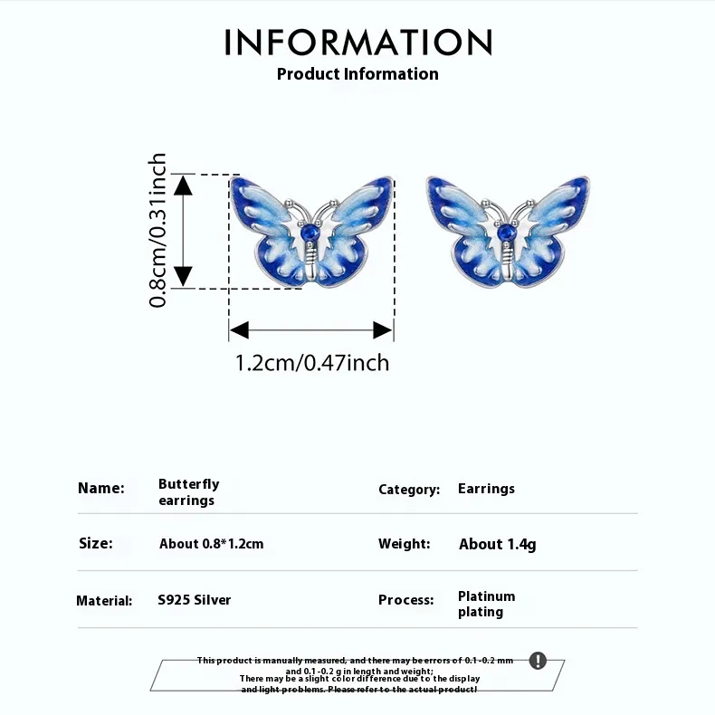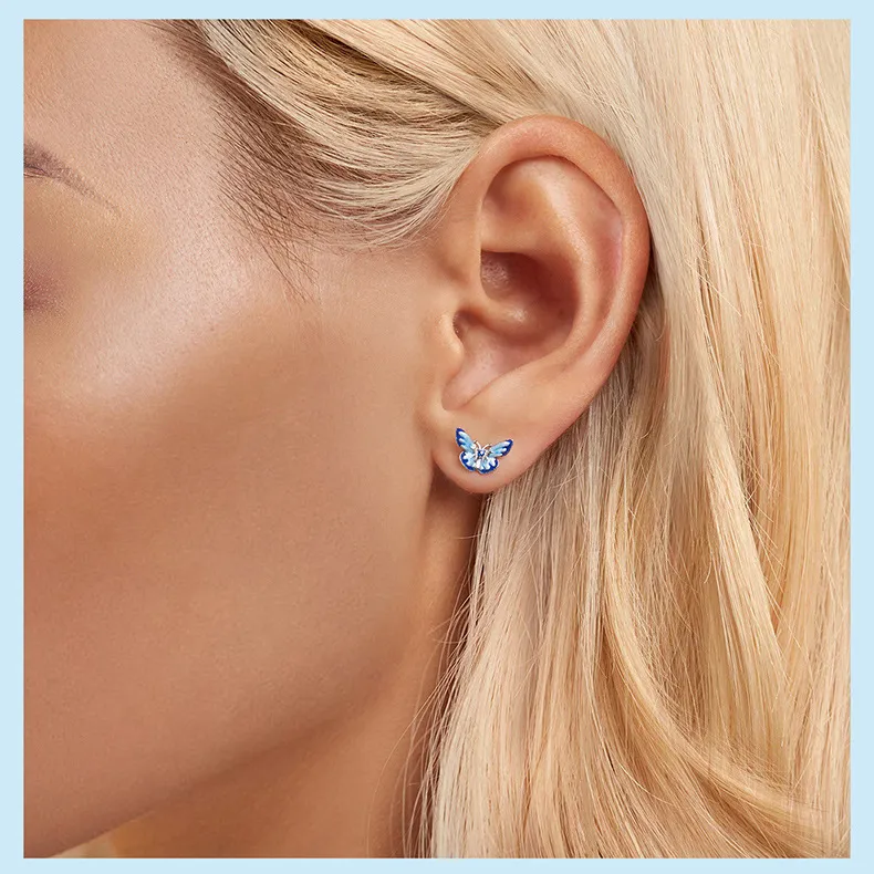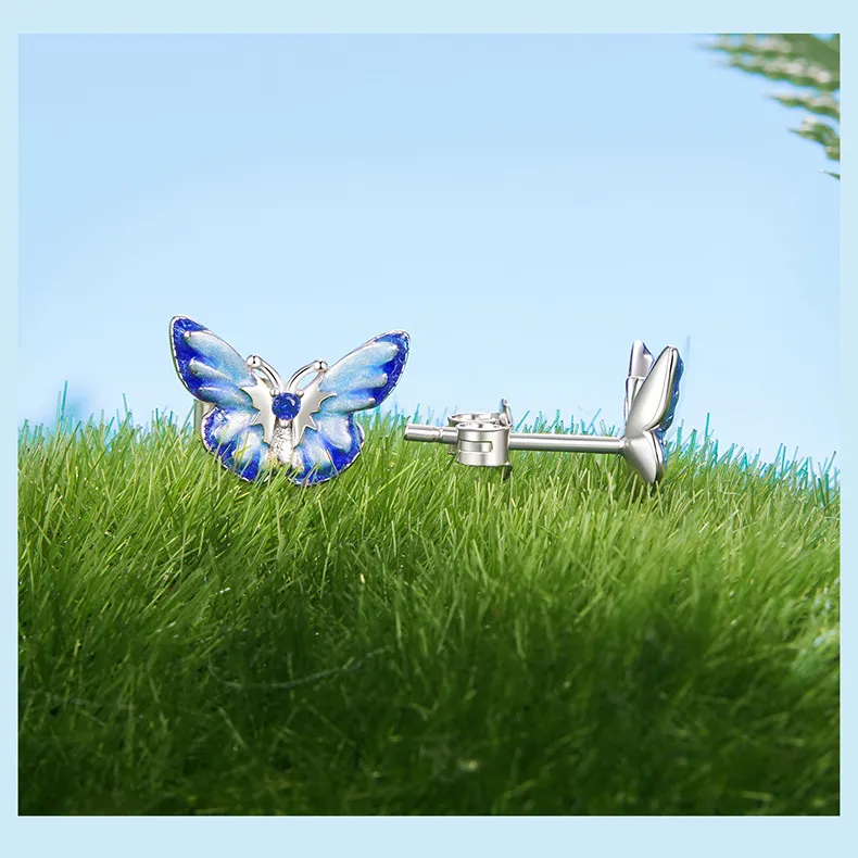 New Blue Color Butterfly Gradient Stud Earrings