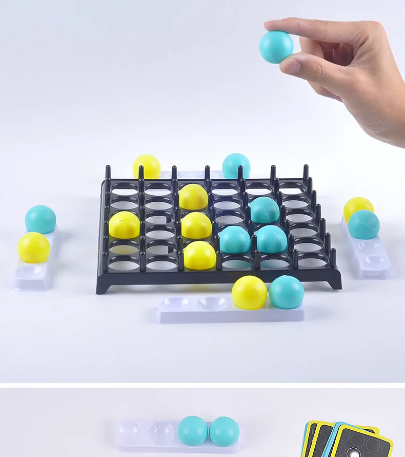 - Players take turns bouncing their balls onto the game board.