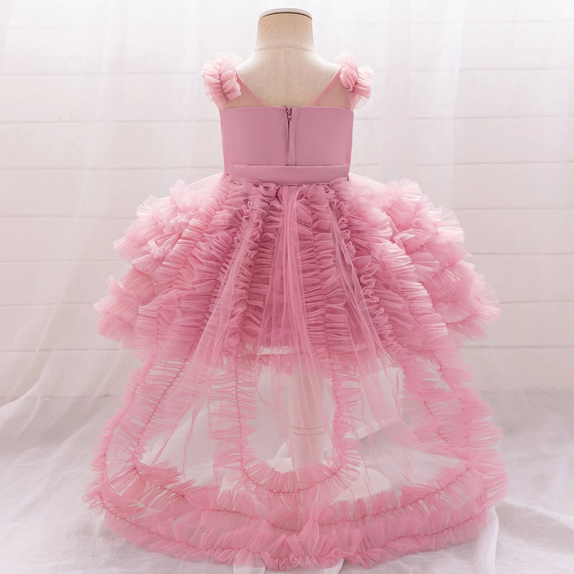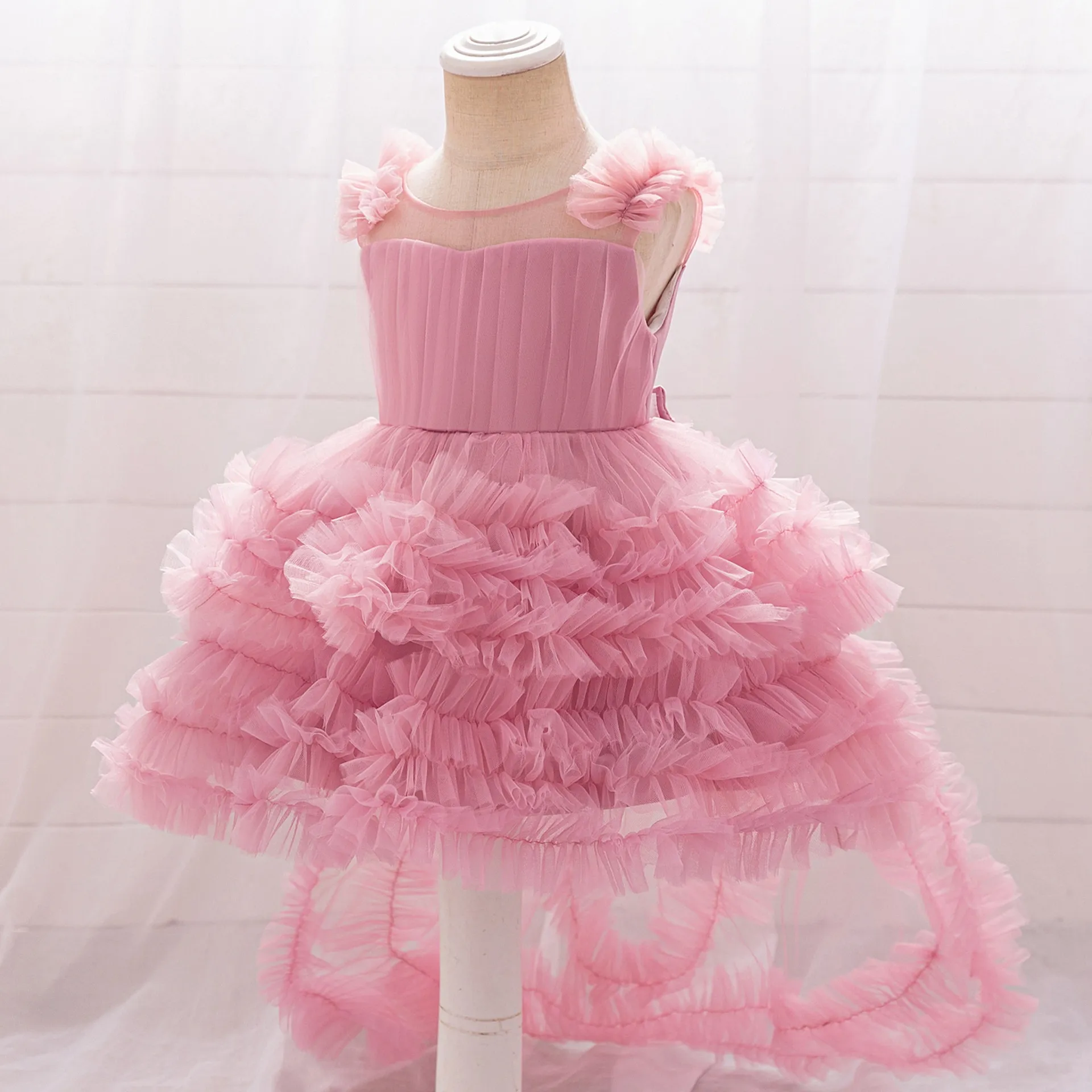 This dress is designed with a sleeveless cut, making it ideal for warm days or indoor events. The sleeveless style gives your child a