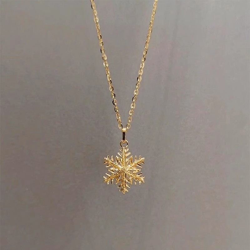 The gold finish of the pendant adds a touch of warmth and luxury, making it perfect for both formal and casual occasions. Whether worn alone for a minimalist look or layered with other necklaces, the Snowflake Pendant Necklace is versatile and stylish, making it a valuable addition to your collection.
