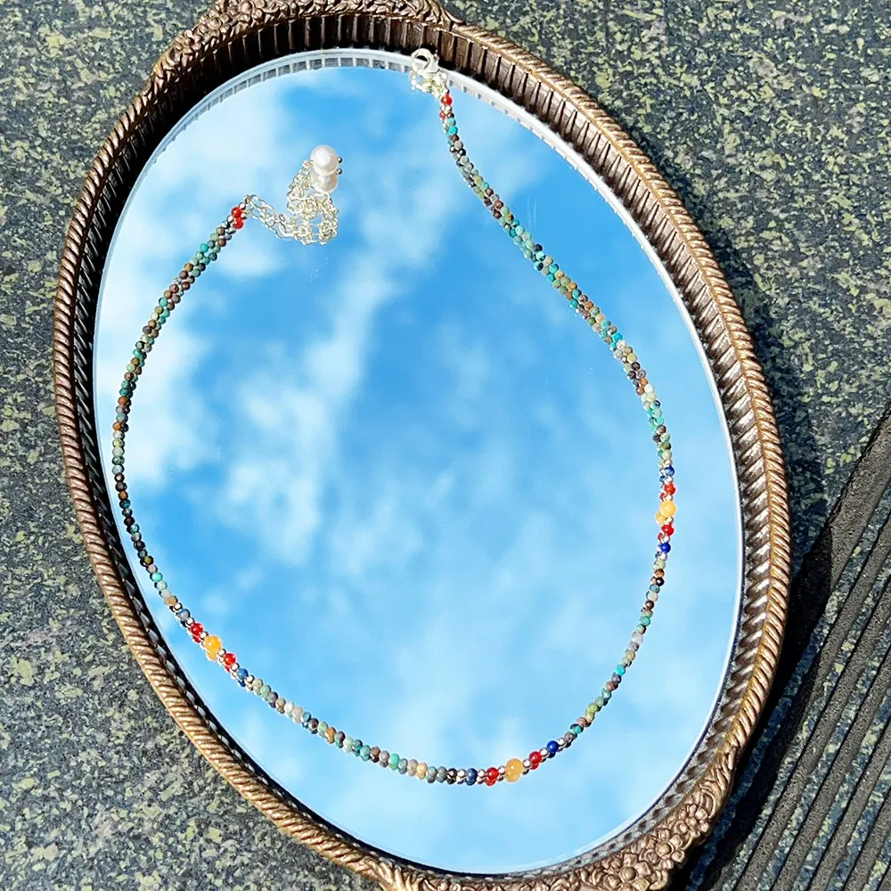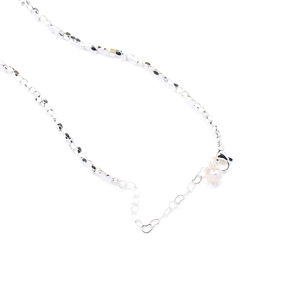 New Cute Simple Broken Silver Necklace – Natural Pearl Pendant with Colourful Beads Collarbone Chain