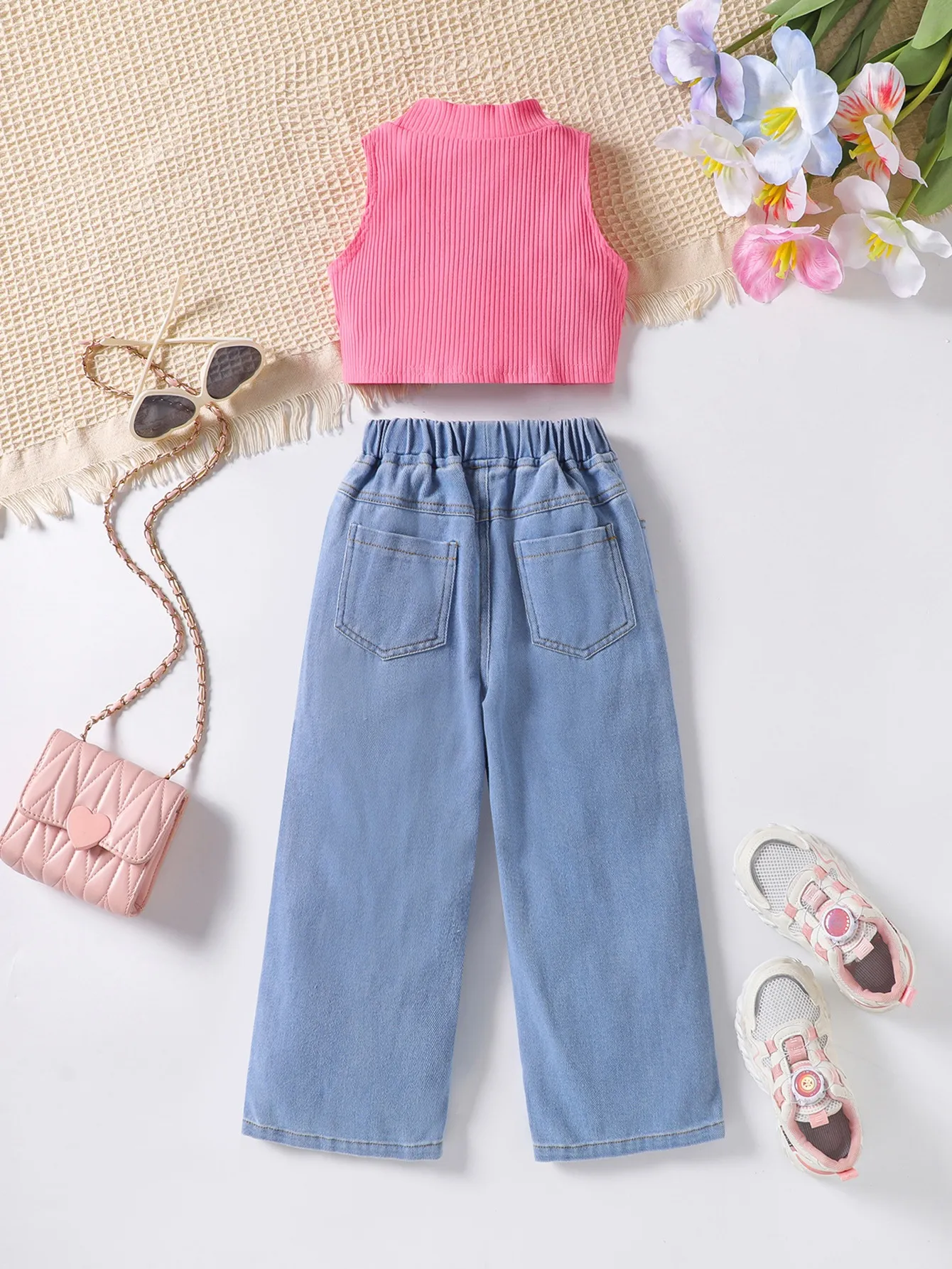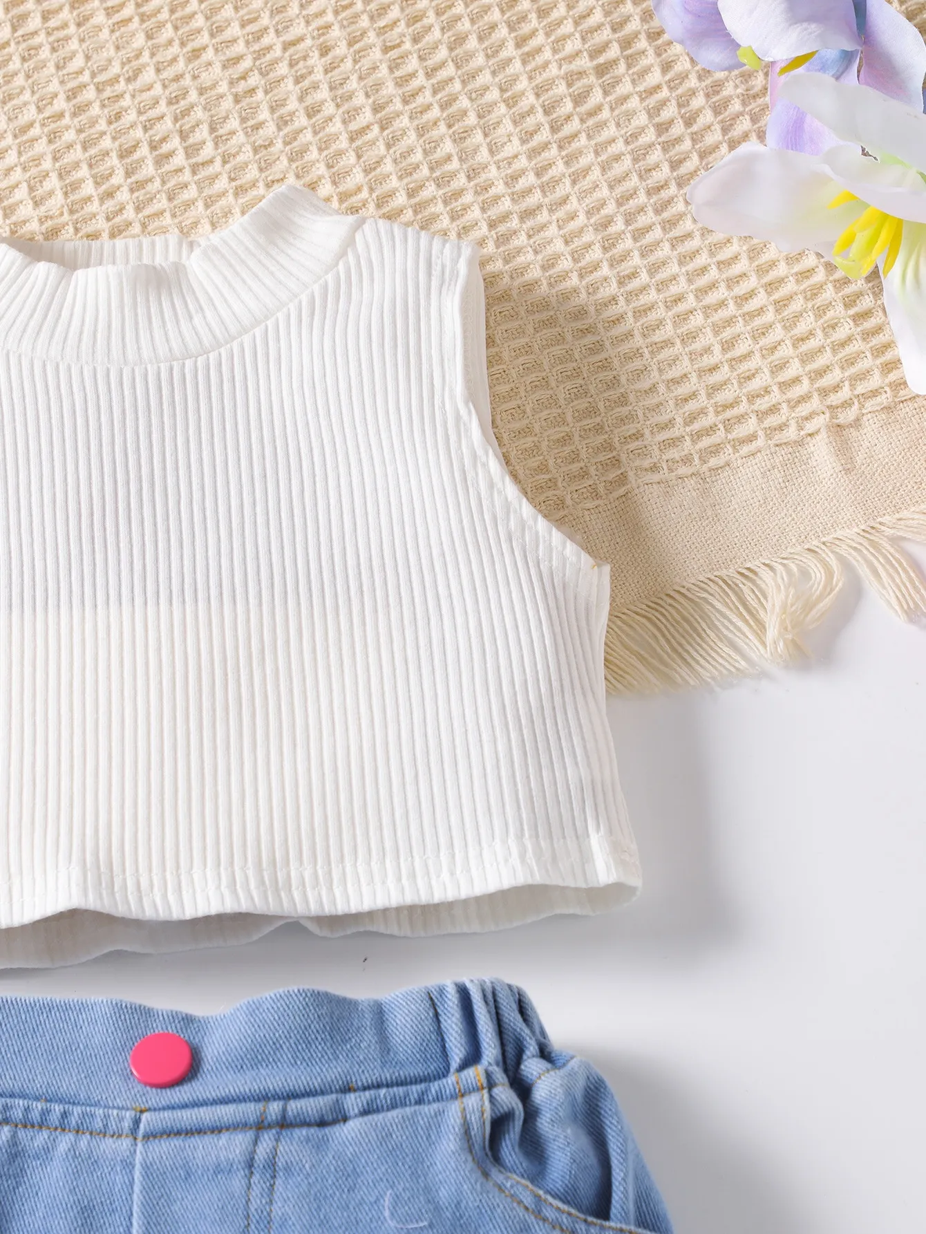 👧 New Girls’ Solid Color Sleeveless Vest – Stylish and Comfortable