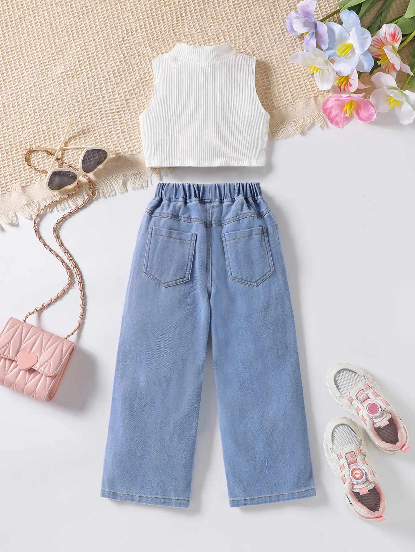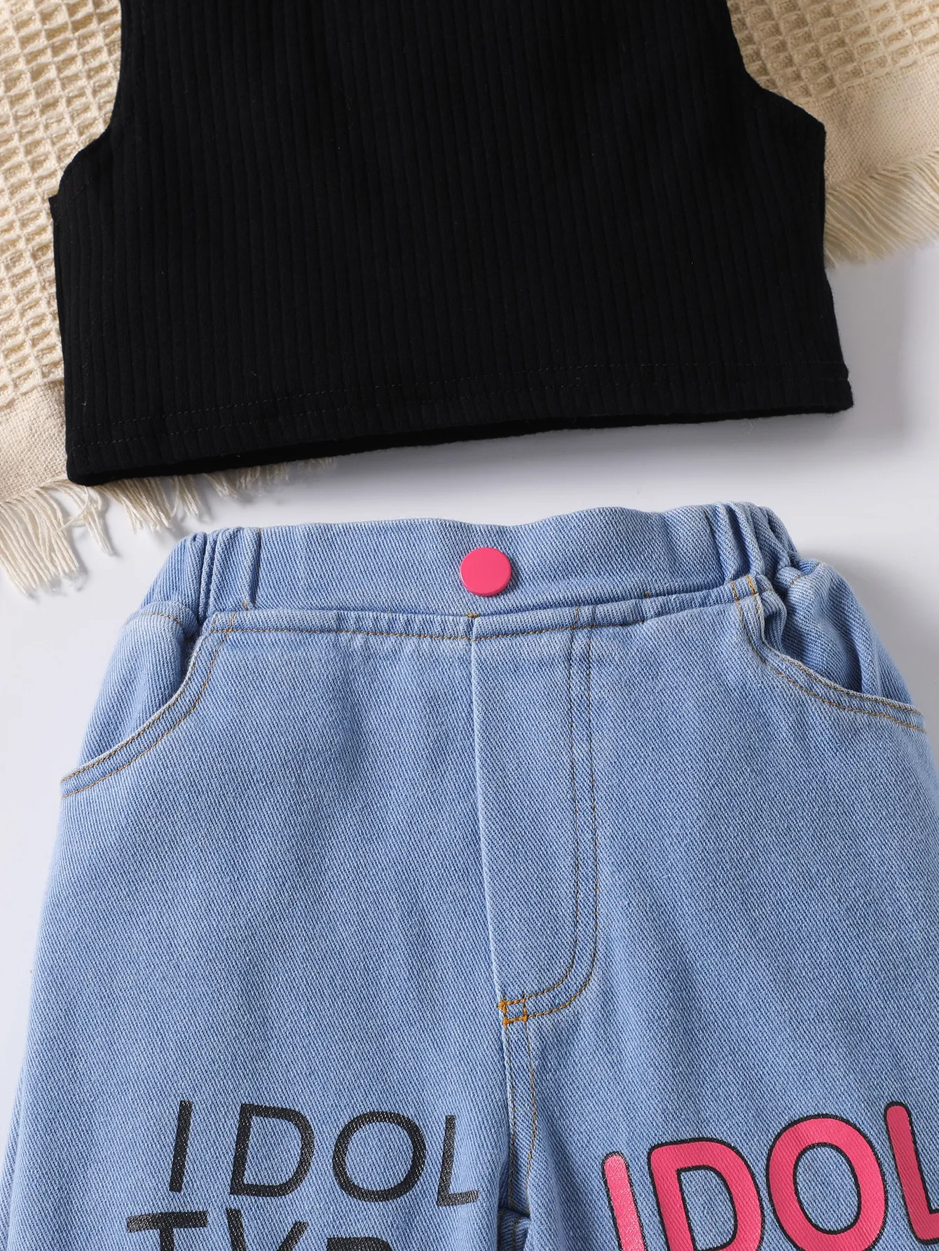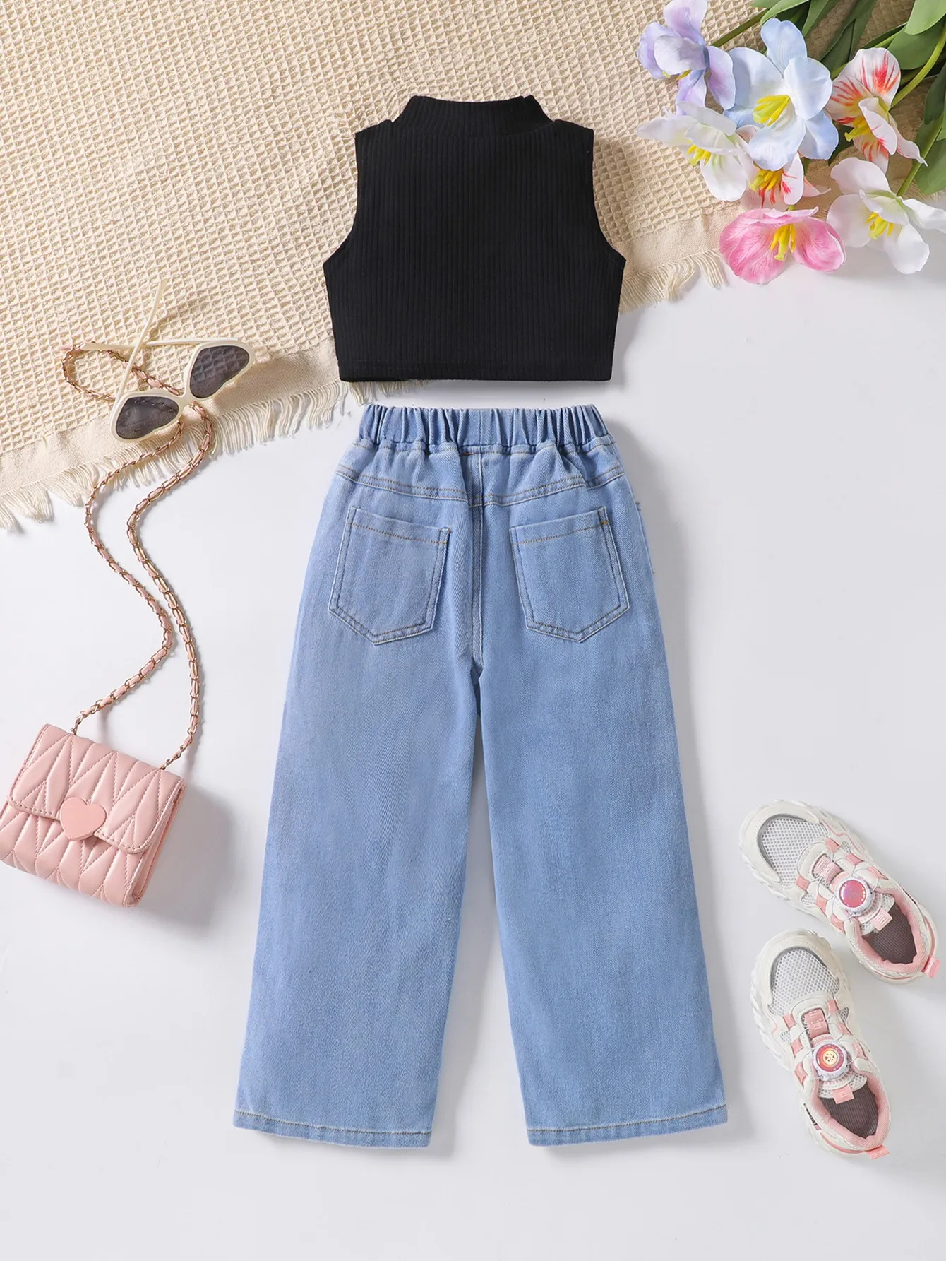 Perfect for playdates, outings, or family gatherings, this sleeveless vest is both fashionable and functional, adding a trendy yet practical piece to any girl’s wardrobe.