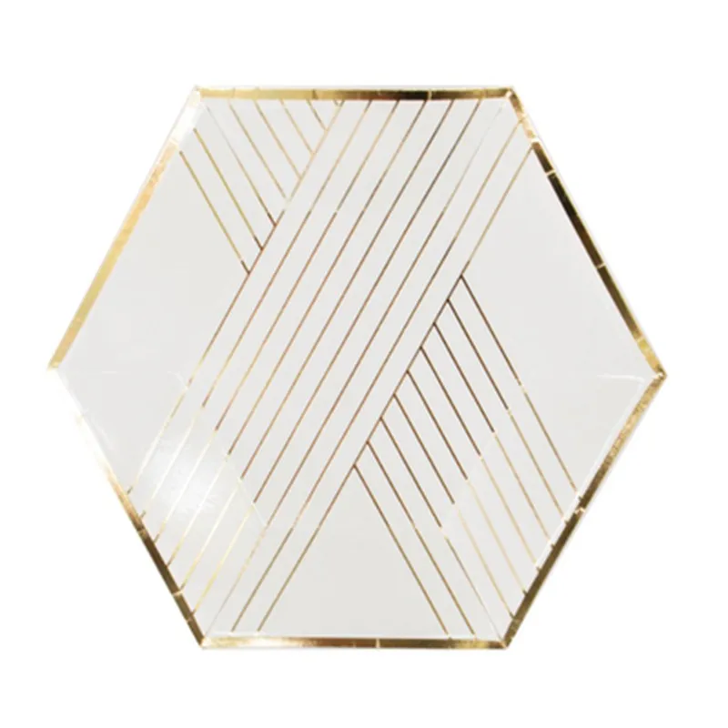 New Golden Paper Plate Cup Napkin Straw Happy Birthday Wedding Party