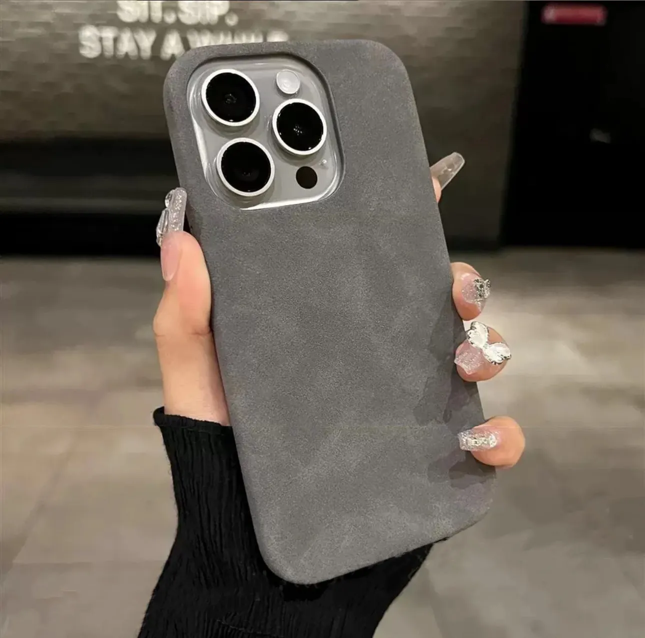 New High-grade Solid Color Suede Phone Case
