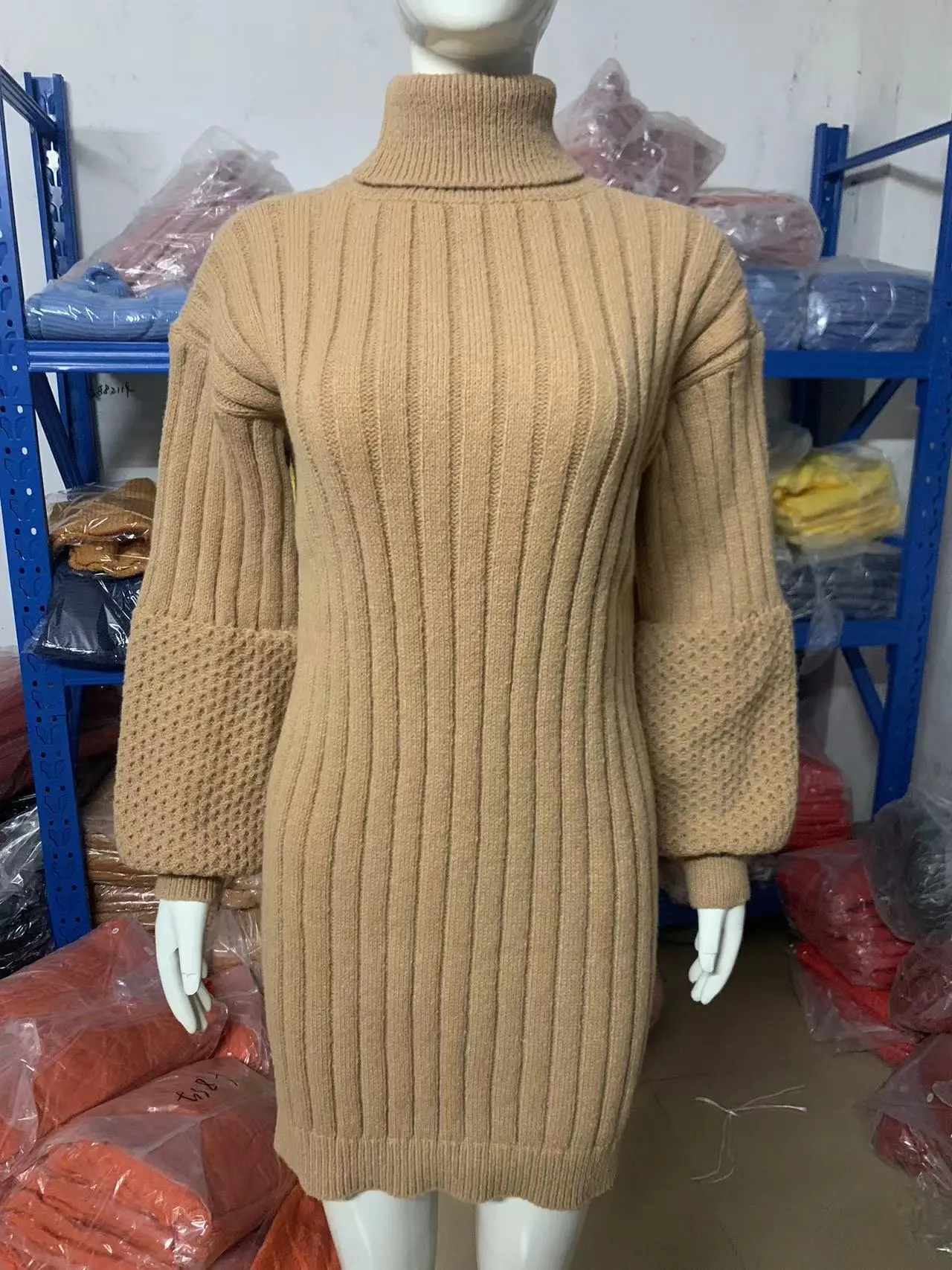 Designed with practicality in mind, this knitted dress is easy to care for and can be worn throughout the year. Whether you're headed to a coffee shop, running errands, or attending a casual gathering, the New High Neck Loose Casual Knitted Dress is your go-to option for effortless elegance. Embrace the cozy-chic trend with this must-have addition to your wardrobe that combines comfort, style, and functionality.