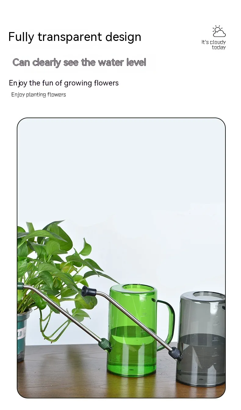 The Gardening Watering Can features a specially designed spout that delivers a gentle, even flow of water, preventing soil disruption and ensuring that your plants receive the hydration they need without overwatering. The ergonomic handle provides a comfortable grip, allowing for easy maneuverability, whether you're watering delicate seedlings or larger garden plants. Its sleek, modern design complements any gardening setup, adding a touch of elegance to your gardening tools.