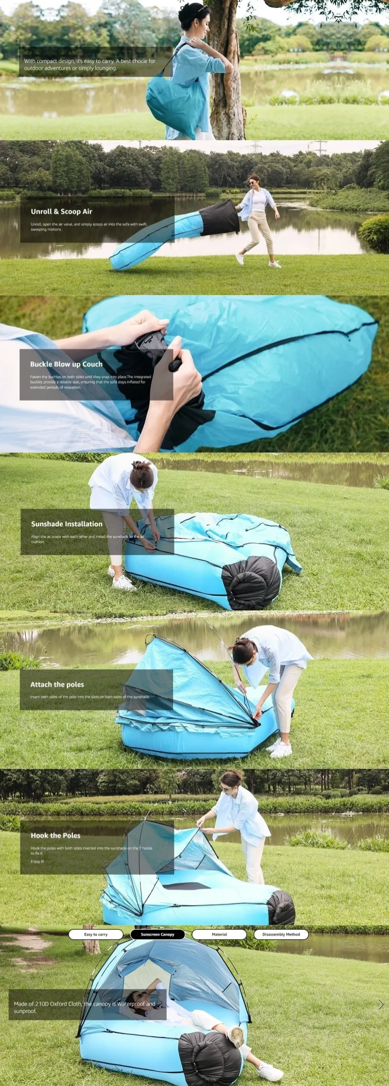 The New Inflatable Lazy Sofa Mattress is perfect for a variety of outdoor activities. It can be used as a lounge chair at the beach, a mattress for camping trips, or as additional seating at outdoor festivals and events. Its versatile design makes it ideal for lounging in the sun, reading, or taking a nap in any outdoor setting.