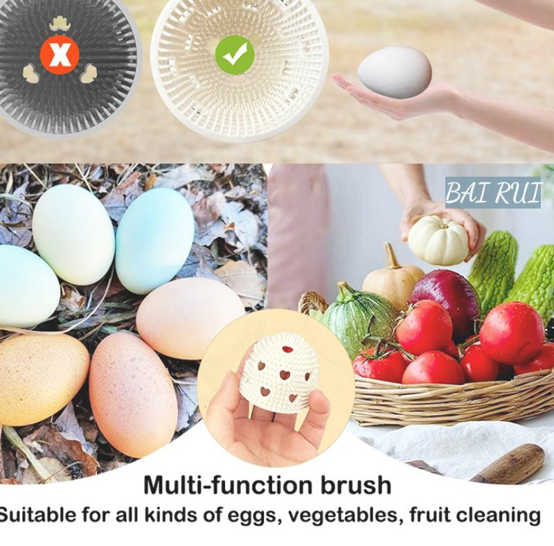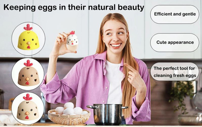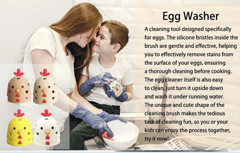Gentle on Eggs: The scrubber features soft, flexible bristles that gently clean the eggs without causing damage or