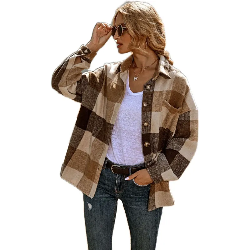 New Lapel Loose Casual Shirt Large Plaid Jacket