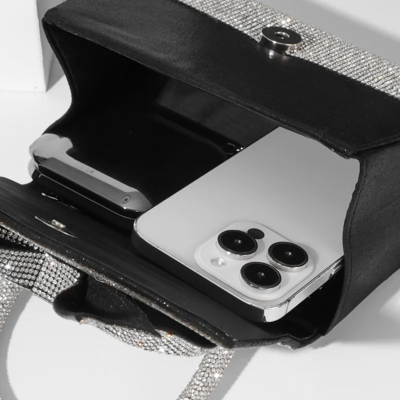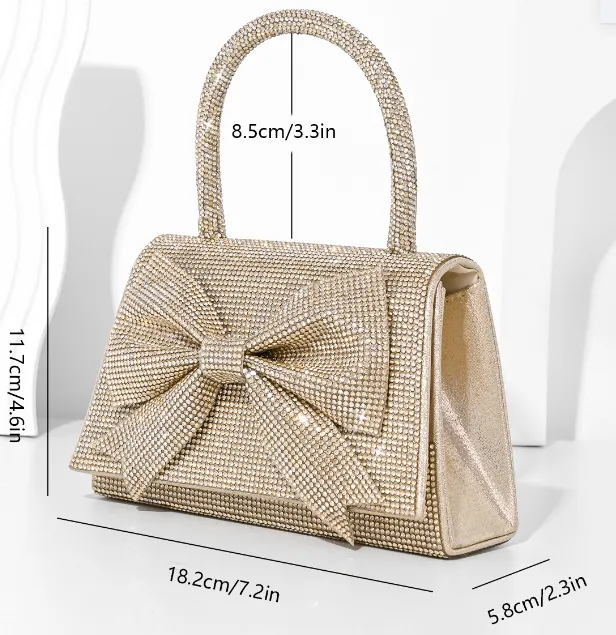 With its sparkling diamonds, luxurious design, and delicate bow detailing, this handbag is more than just a fashion accessory—it's a statement piece that showcases your refined taste and love for all things chic.