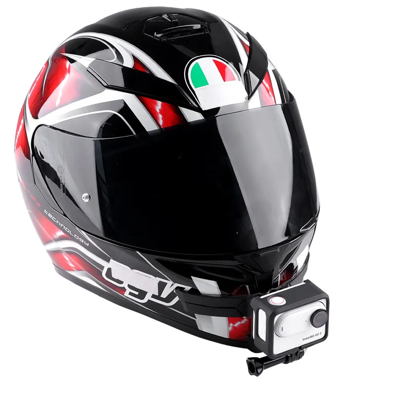 The motorcycle helmet chin mount provides a secure and stable platform for attaching action cameras like GoPro, DJI Osmo, or any camera with compatible mounts. Its design ensures that your camera stays in place even in the toughest riding conditions, preventing unwanted movements or dislodging.