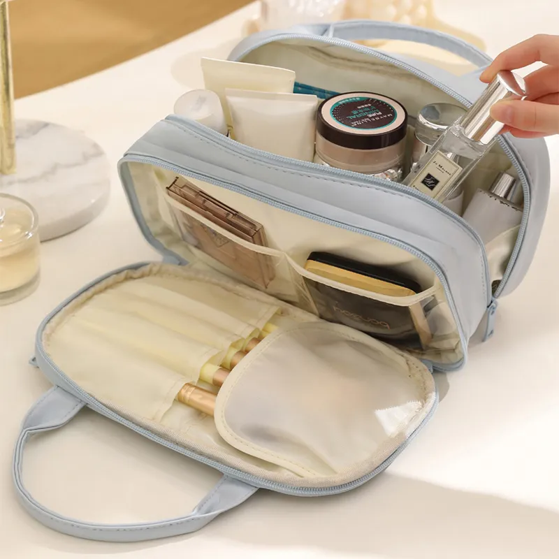 New Portable Cosmetic Bag With Handle Large Capacity Waterproof Make-up Toiletries Handbag Multifunctional Storage Travel Bag For Women